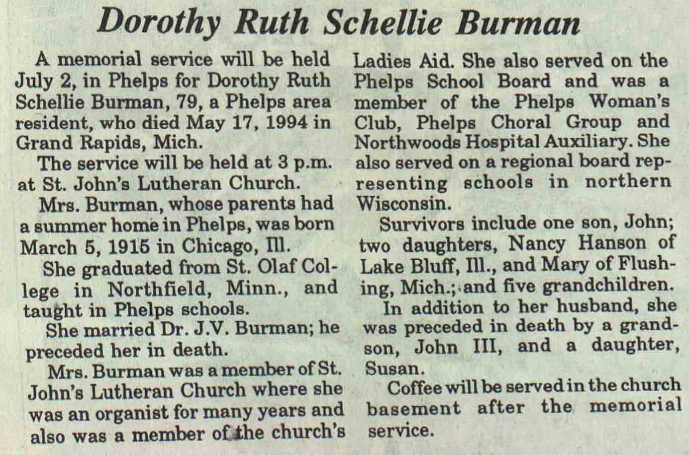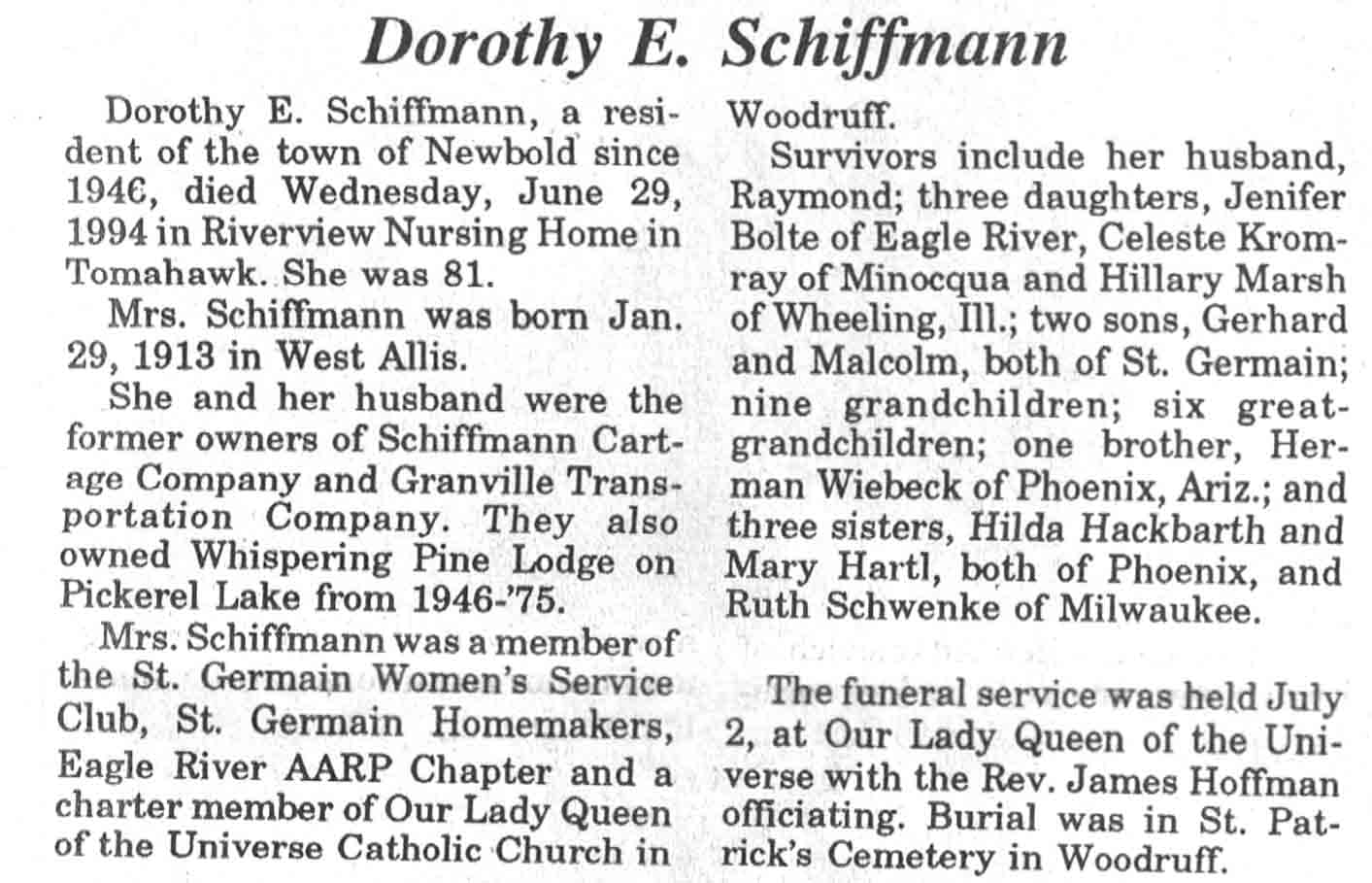 | Schiffmann | Dorothy E (Wiebeck) | 29 Jan 1913 | 29 Jun 1994 | V N-R | 06 Jul 1994 | 4 |