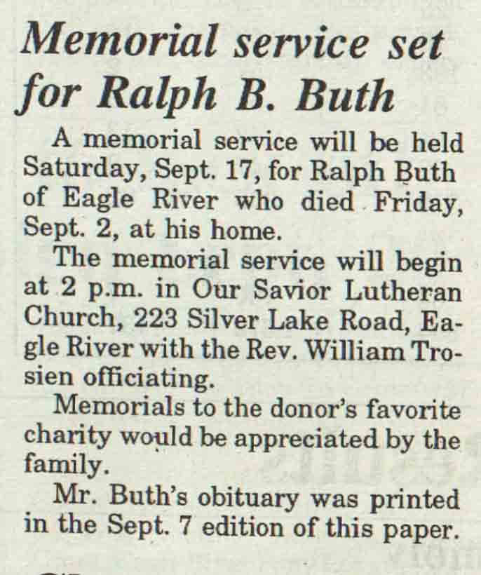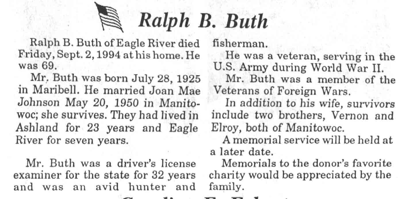 | Buth | Ralph B #1 | 28 Jul 1925 | 02 Sep 1994 | V N-R | 07 Sep 1994 | 4 |