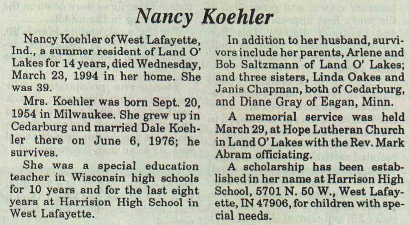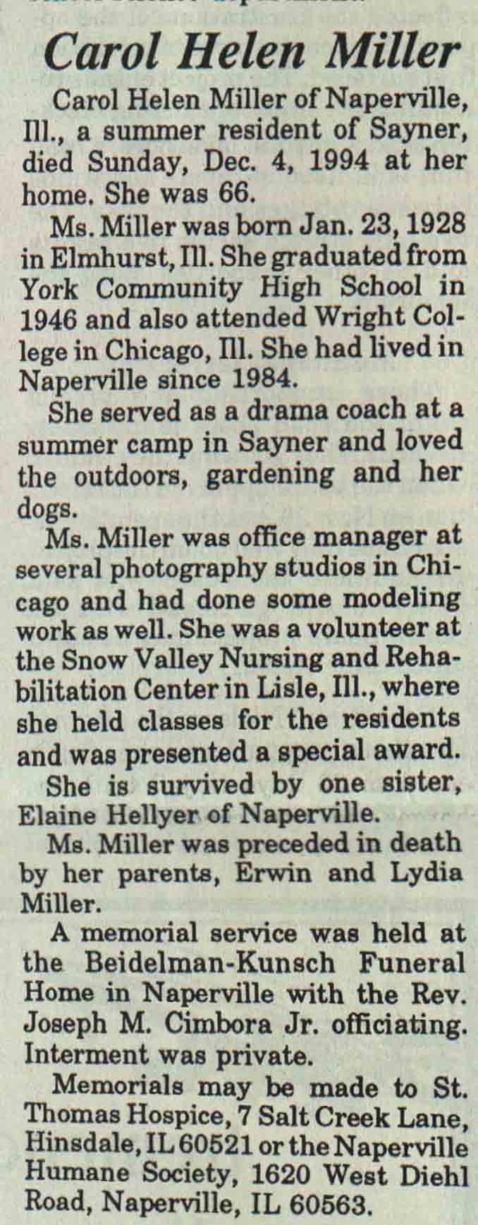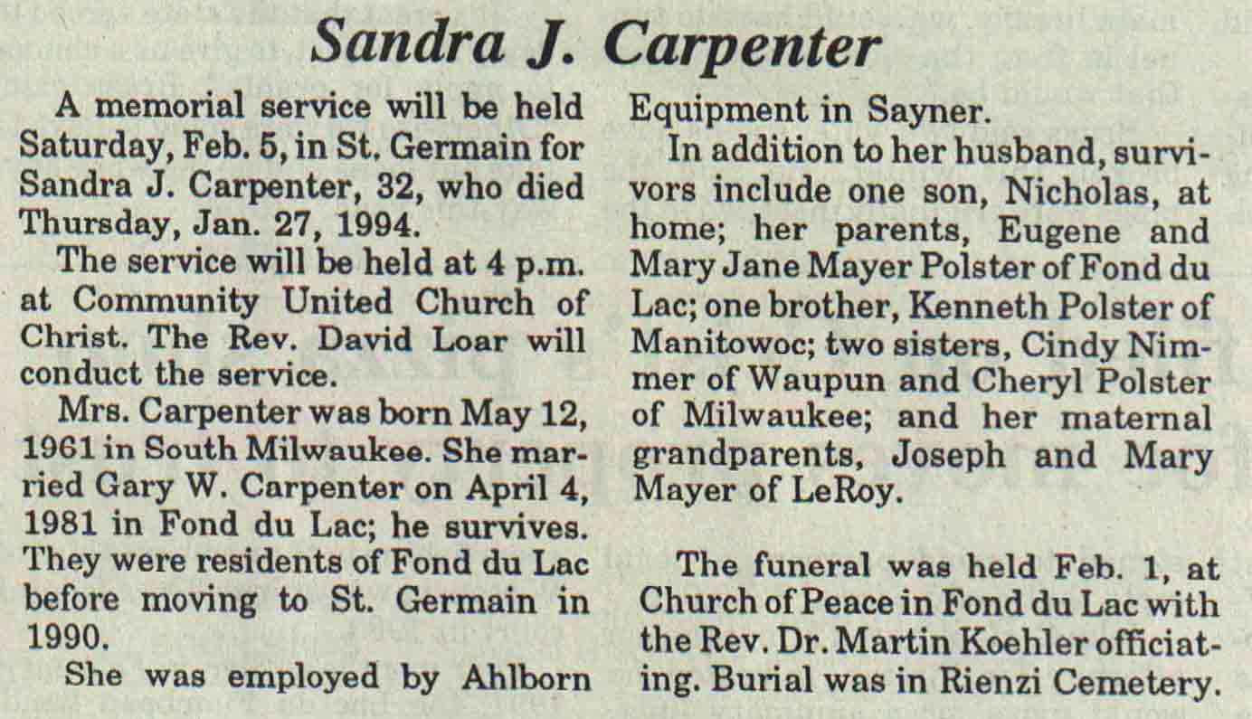 | Carpenter | Sandra J (Polster) | 12 May 1961 | 27 Jan 1994 | V N-R | 02 Feb 1994 | 4 |