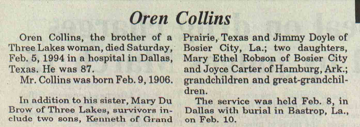 | Collins | Oren | 09 Feb 1906 | 05 Feb 1994 | V N-R | 16 Feb 1994 | 4 |