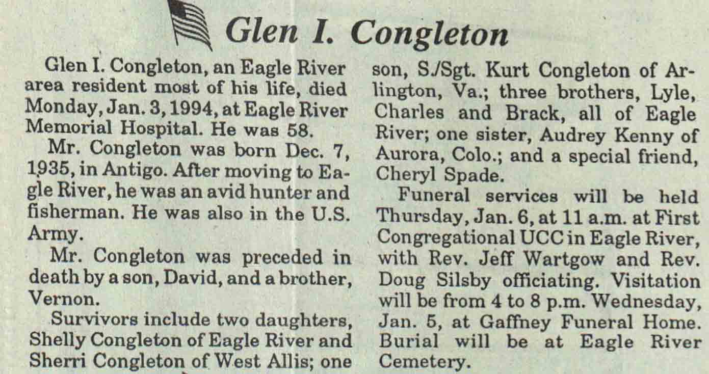 | Congleton | Glen I | 07 Dec 1935 | 03 Jan 1994 | V N-R | 05 Jan 1994 | 4 |
