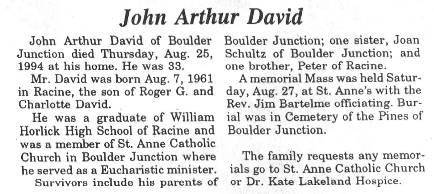 | David | John Arthur | 07 Aug 1961 | 25 Aug 1994 | V N-R | 31 Aug 1994 | 4 |