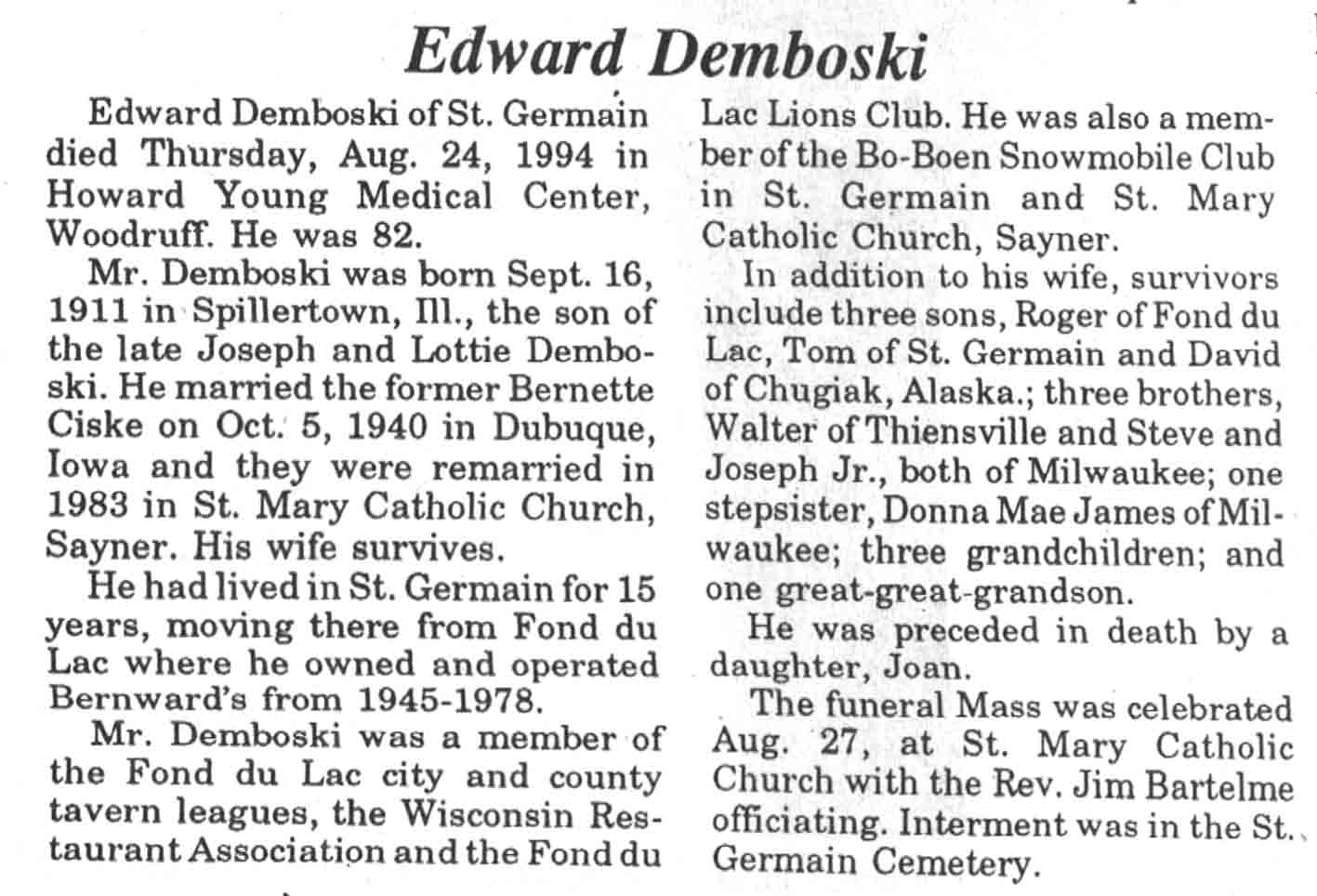 | Demboski | Edward | 16 Sep 1911 | 24 Aug 1994 | V N-R | 31 Aug 1994 | 4 |