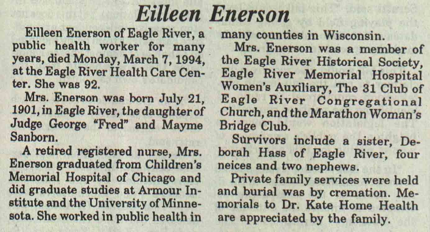 | Enerson | Eileen (Sanborn) | 21 Jul 1901 | 07 Mar 1994 | V N-R | 09 Mar 1994 | 4 |