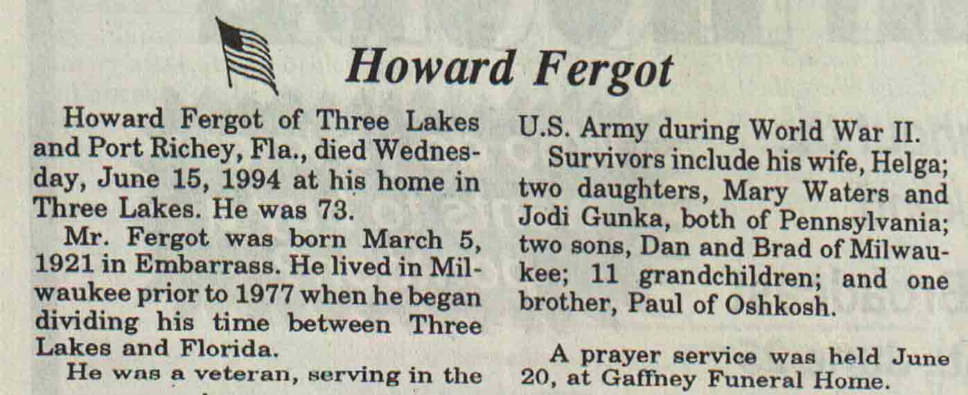| Fergot | Howard | 05 Mar 1921 | 15 Jun 1994 | V N-R | 22 Jun 1994 | 4 |