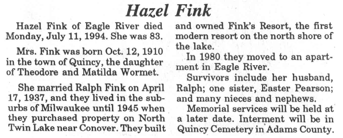 | Fink | Hazel (Wormet) | 12 Oct 1910 | 11 Jul 1994 | V N-R | 20 Jul 1994 | 4 |