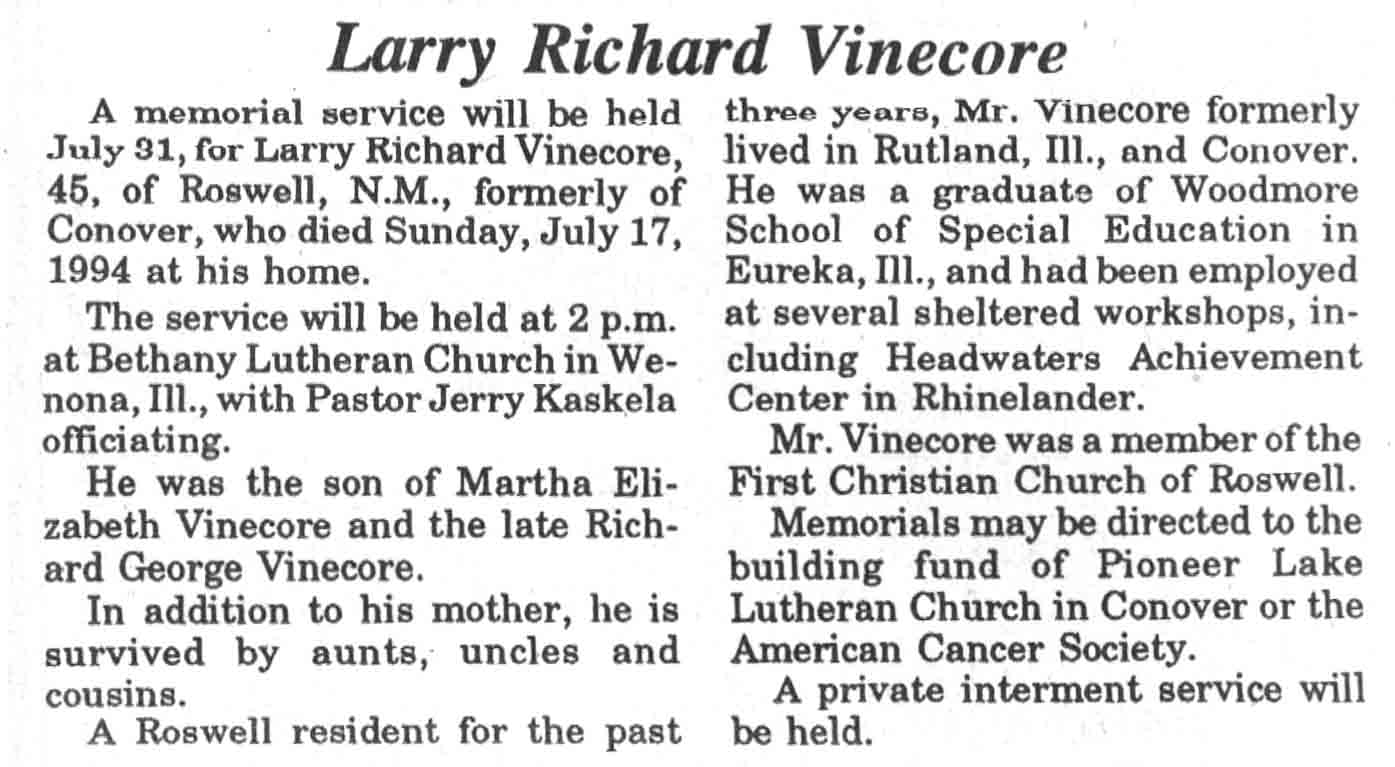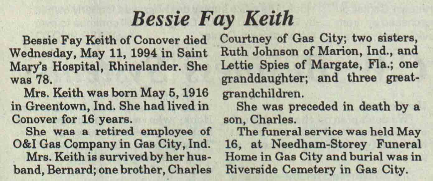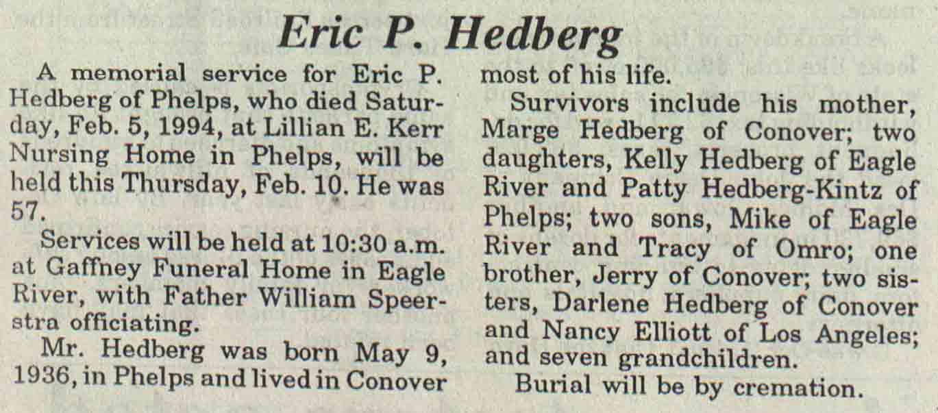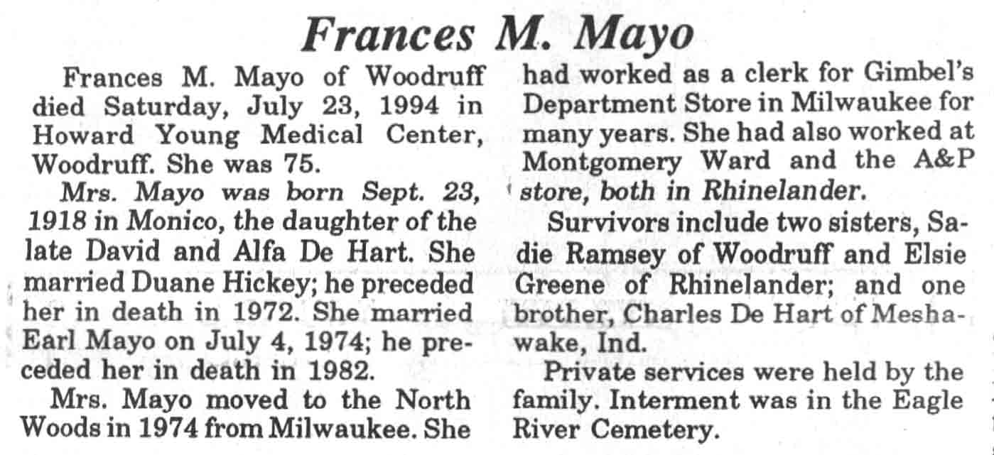 | Eckart | Caroline E | c 1901 | 29 Aug 1994 | V N-R | 07 Sep 1994 | 4 |