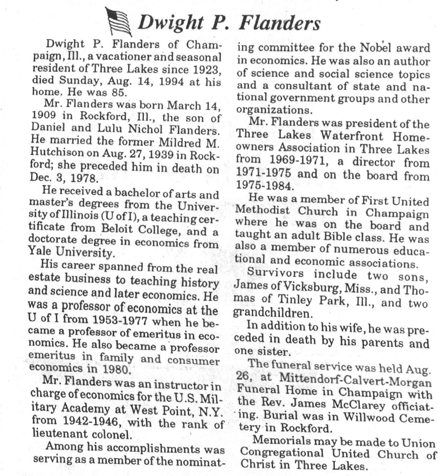 | Flanders | Dwight P | 14 Mar 1909 | 14 Aug 1994 | V N-R | 31 Aug 1994 | 4 |