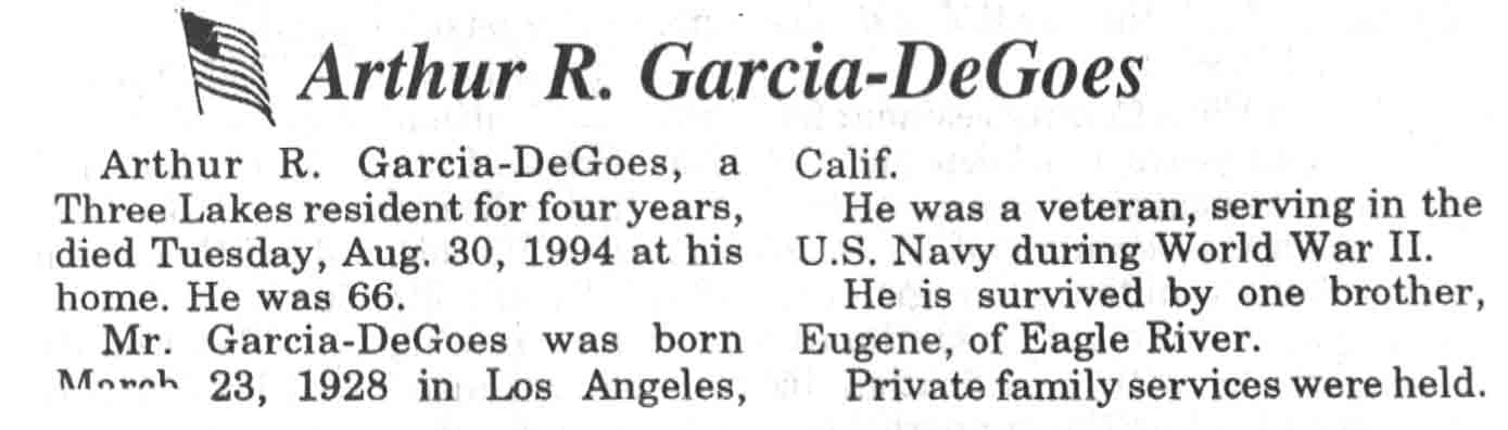 | Garcia-DeGoes | Arthur R | 23 Mar 1928 | 30 Aug 1994 | V N-R | 07 Sep 1994 | 4 |