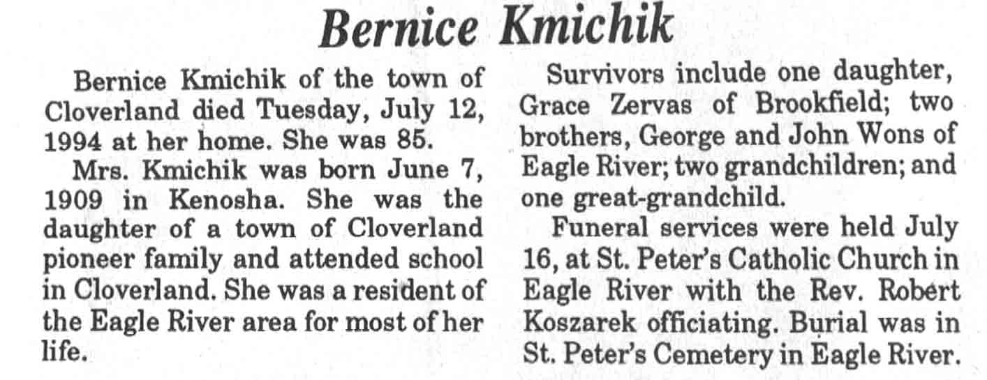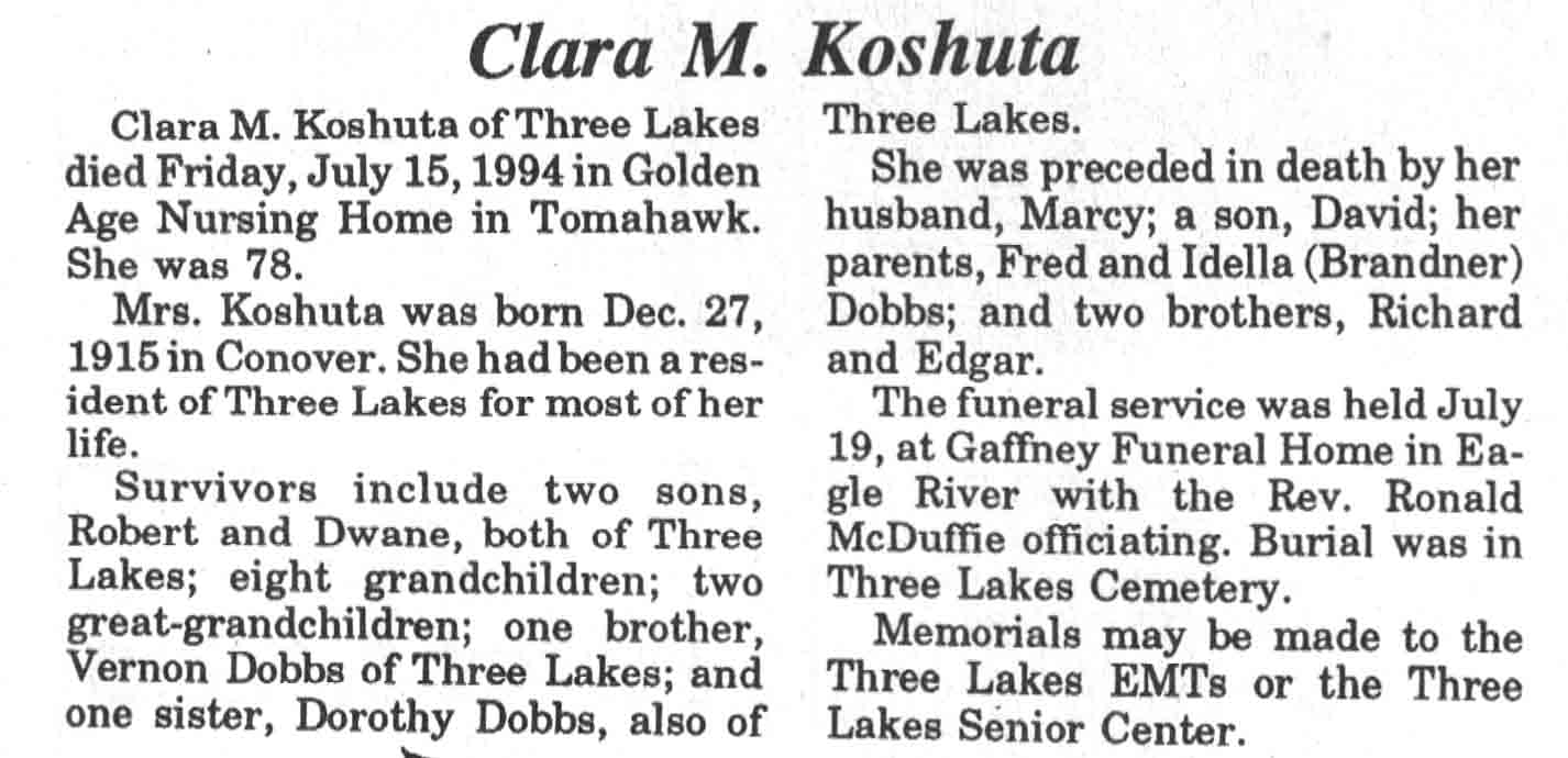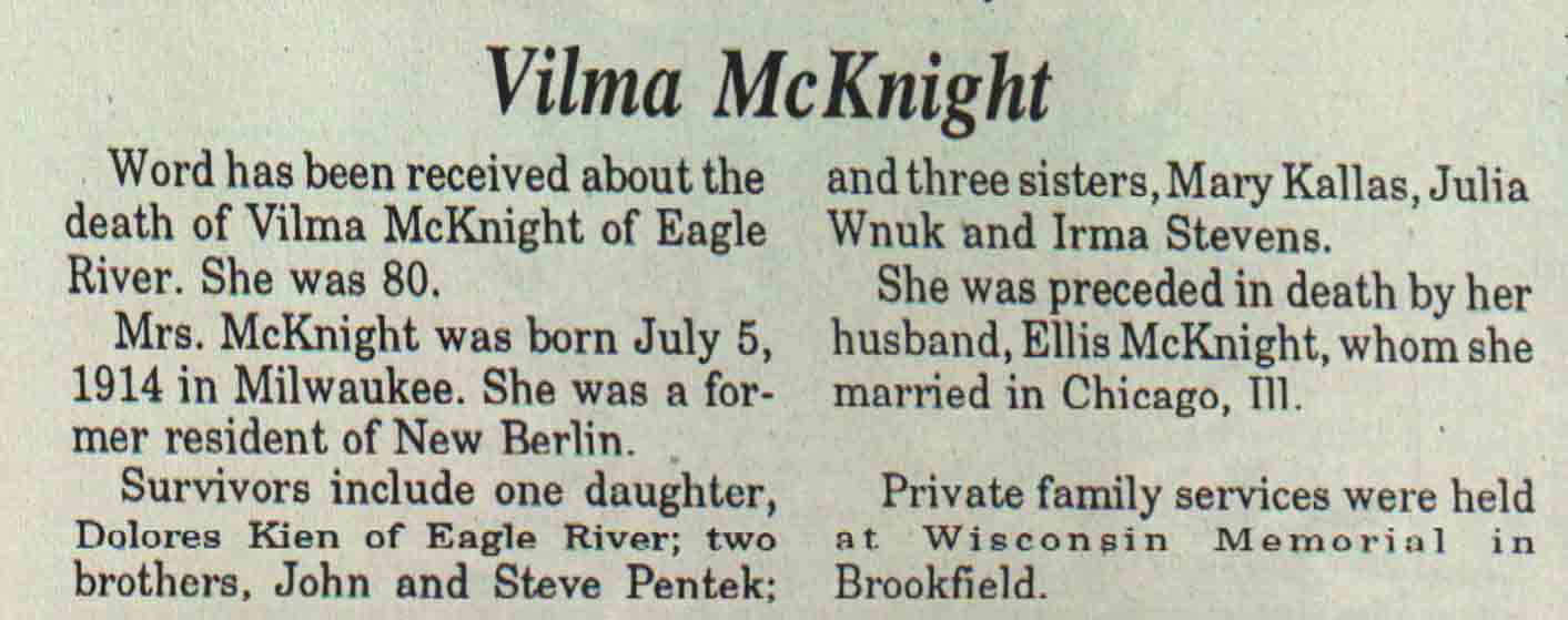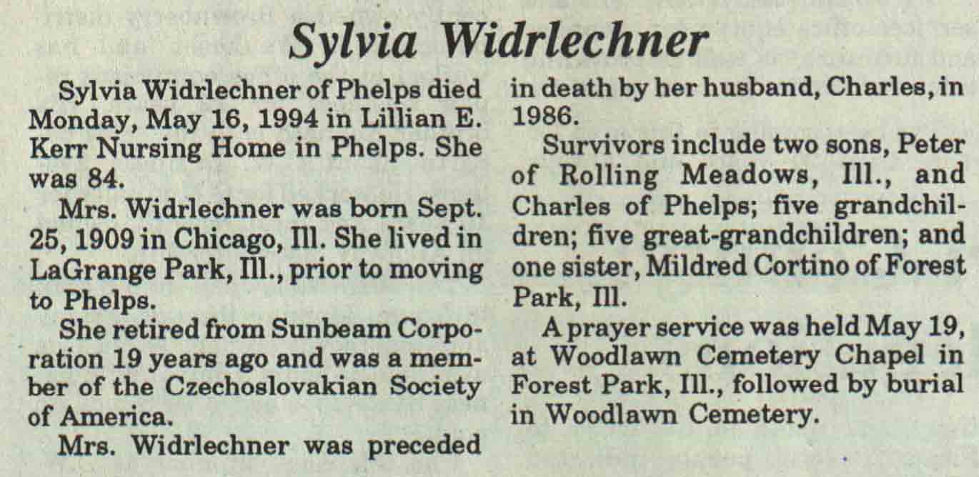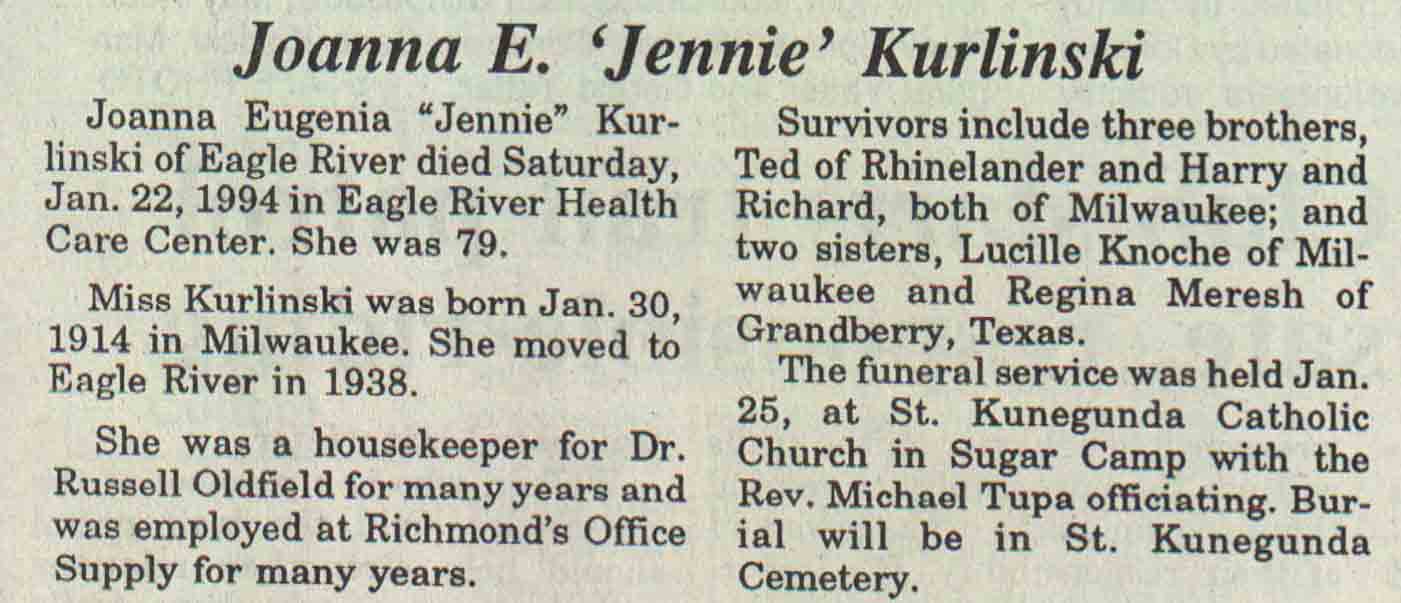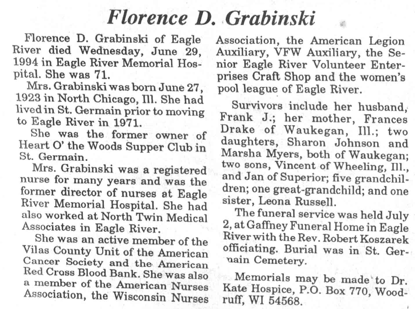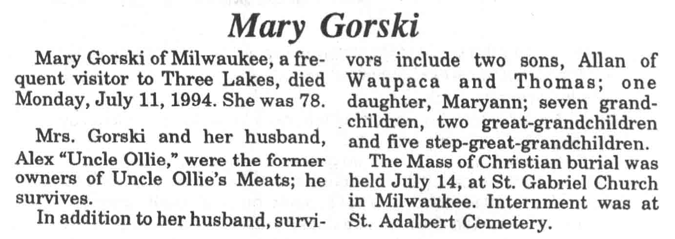 | Gorski | Mary | c 1916 | 11 Jul 1994 | V N-R | 20 Jul 1994 | 4 |