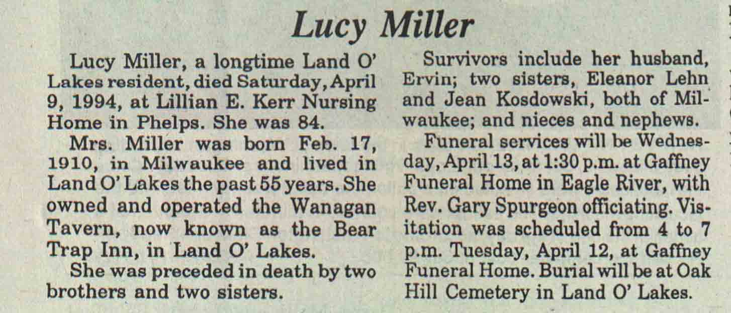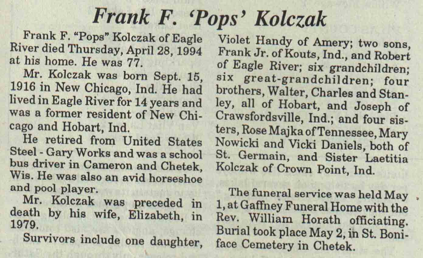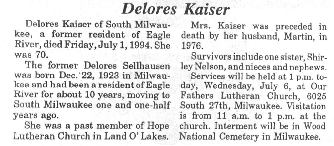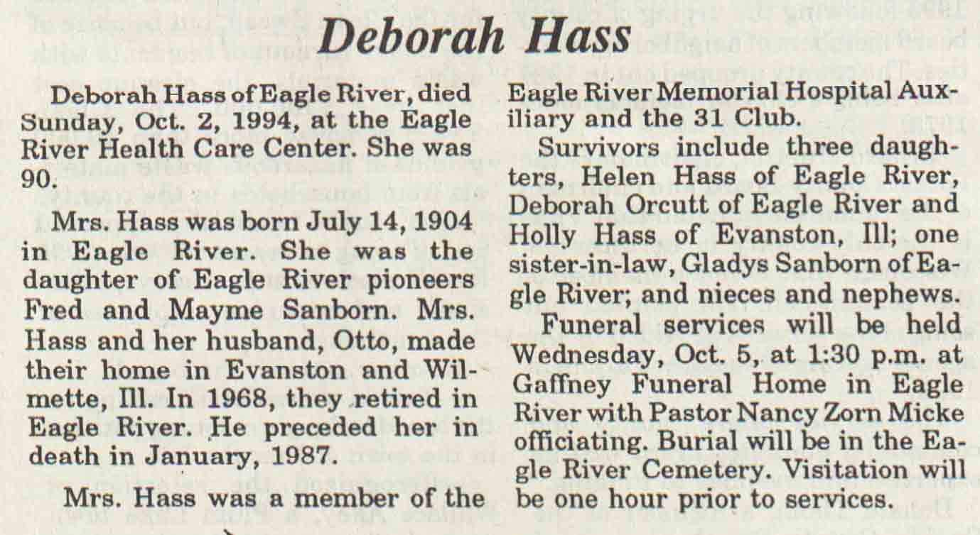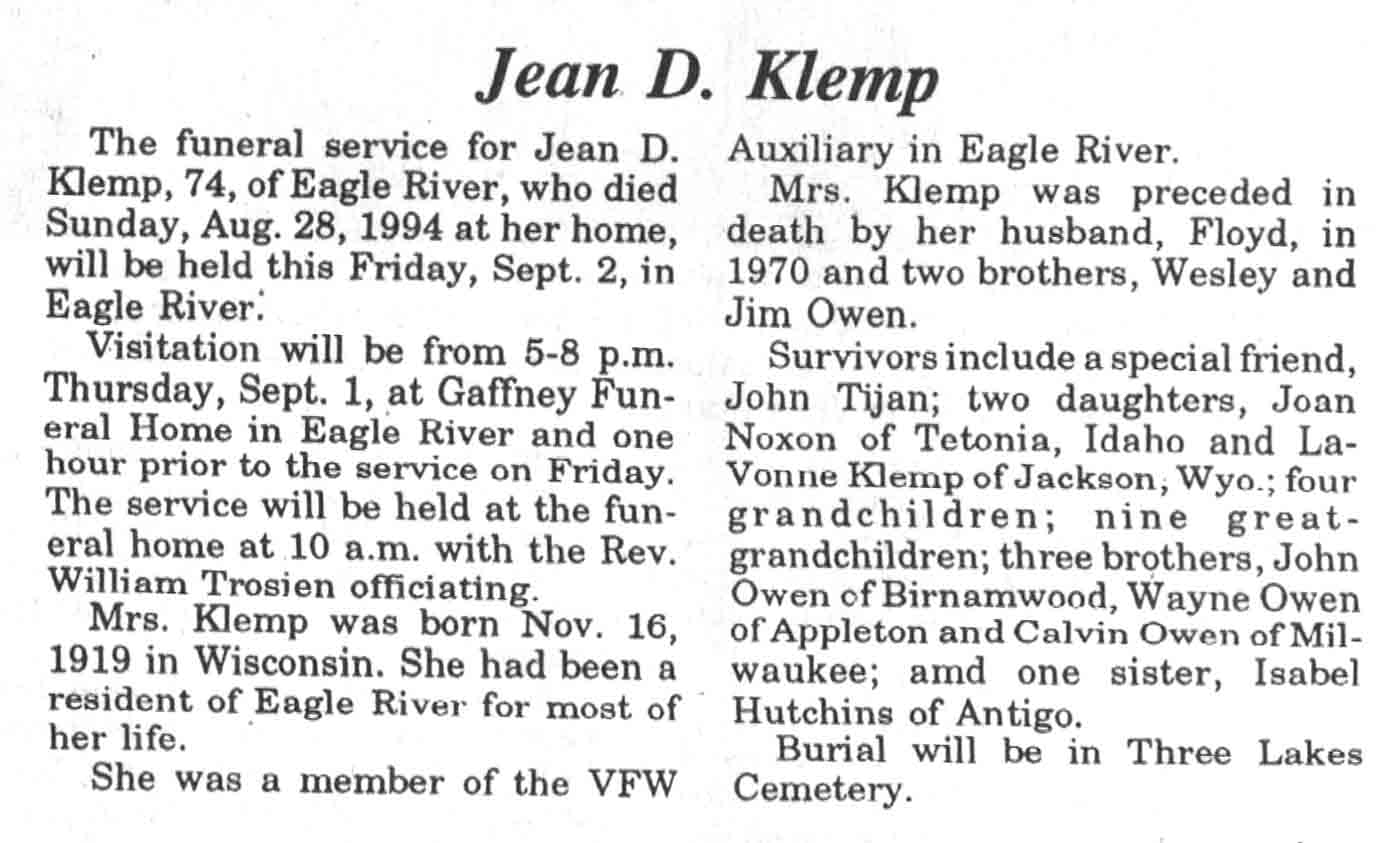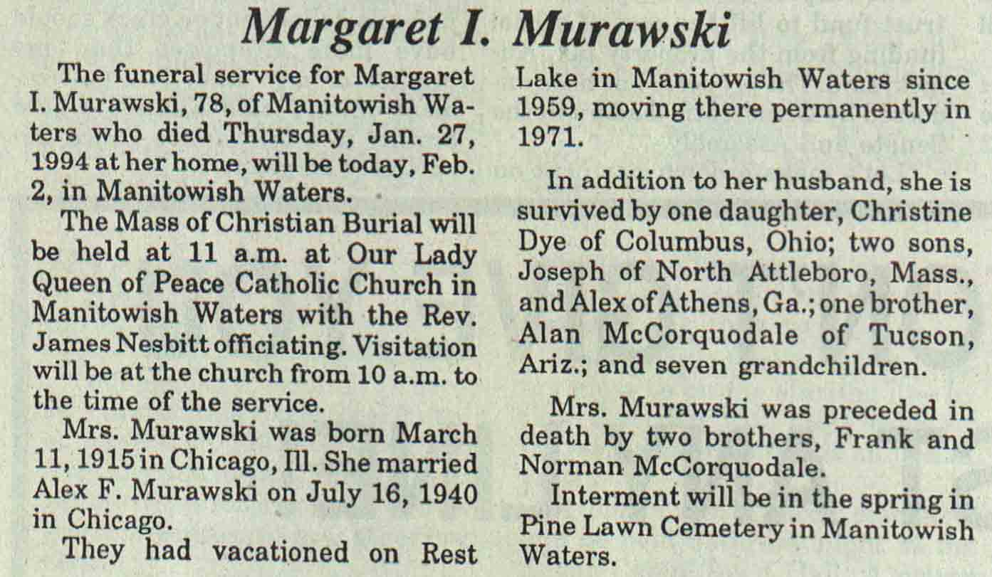 | Gorski | Mary | c 1916 | 11 Jul 1994 | V N-R | 20 Jul 1994 | 4 |