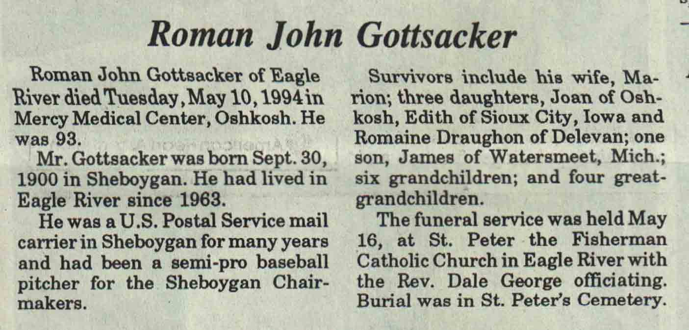 | Gottsacker | Roman John | 30 Sep 1900 | 10 May 1994 | V N-R | 18 May 1994 | 4 |