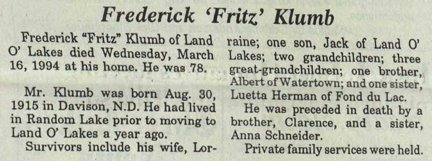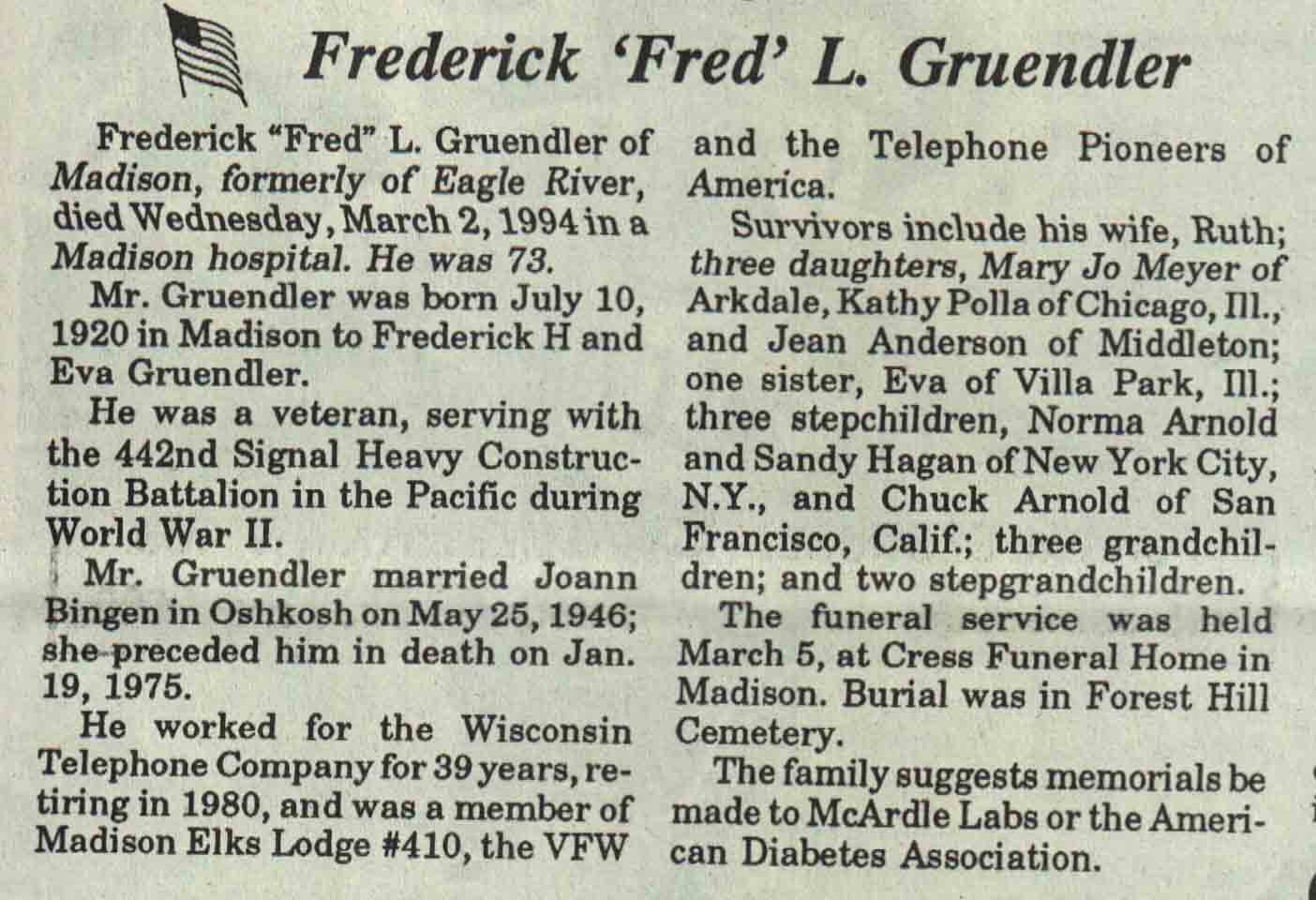 | Fridrych | William R | 10 Oct 1918 | 01 Aug 1994 | V N-R | 03 Aug 1994 | 4 |