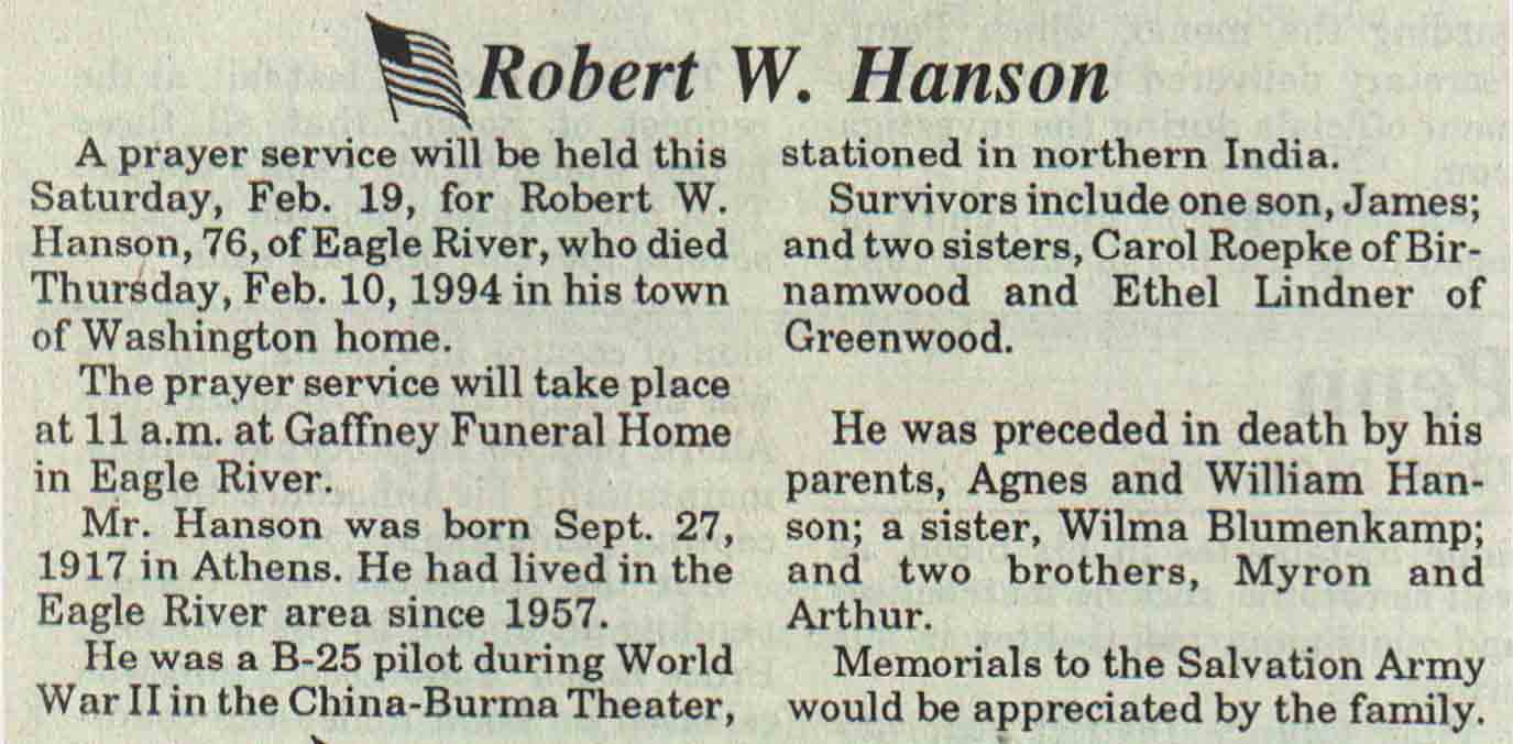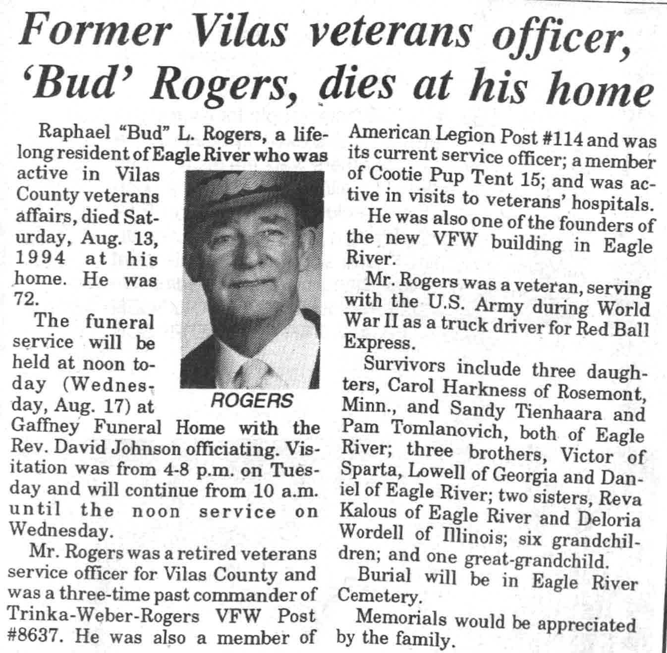 | Rogers | Raphael 'Bud' | c 1922 | 13 Aug 1994 | V N-R | 17 Aug 1994 | 4 |