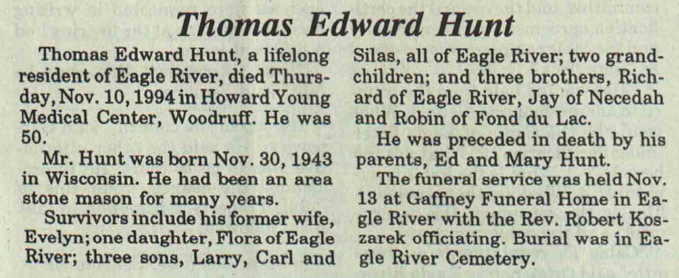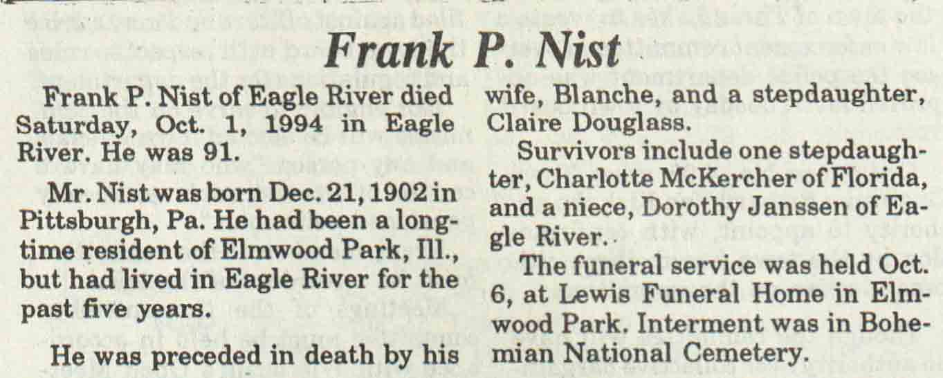 | Francis | Charles W | c 1918 | 26 Feb 1994 | V N-R | 02 Mar 1994 | 4 |