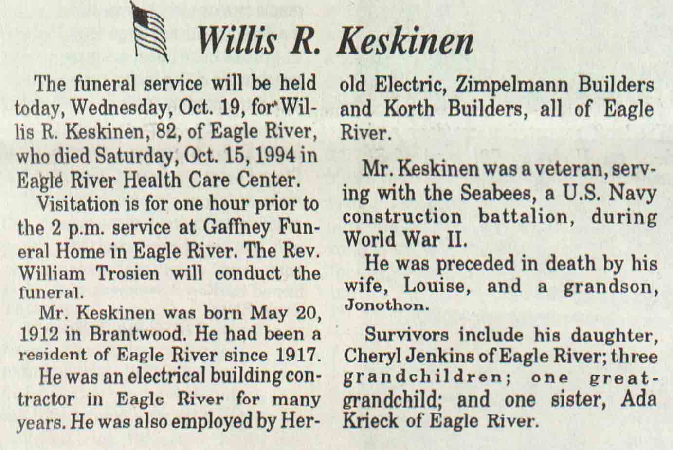 | Raunio | Isaac C | 10 Sep 1912 | 19 Jan 1994 | V N-R | 26 Jan 1994 | 4 |