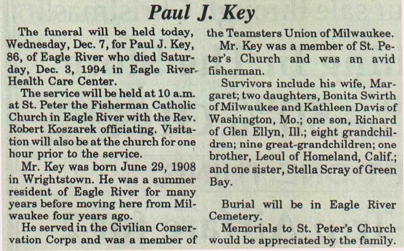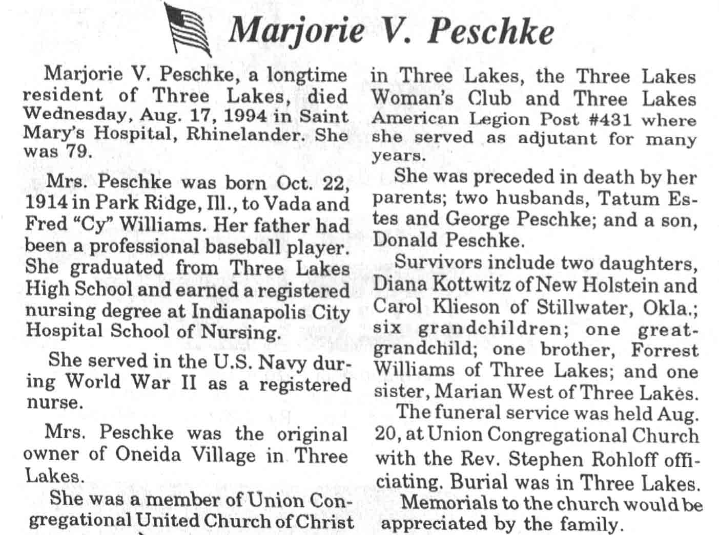 | Peschke | Marjorie V (Williams) | 22 Oct 1914 | 17 Aug 1994 | V N-R | 24 Aug 1994 | 4 |