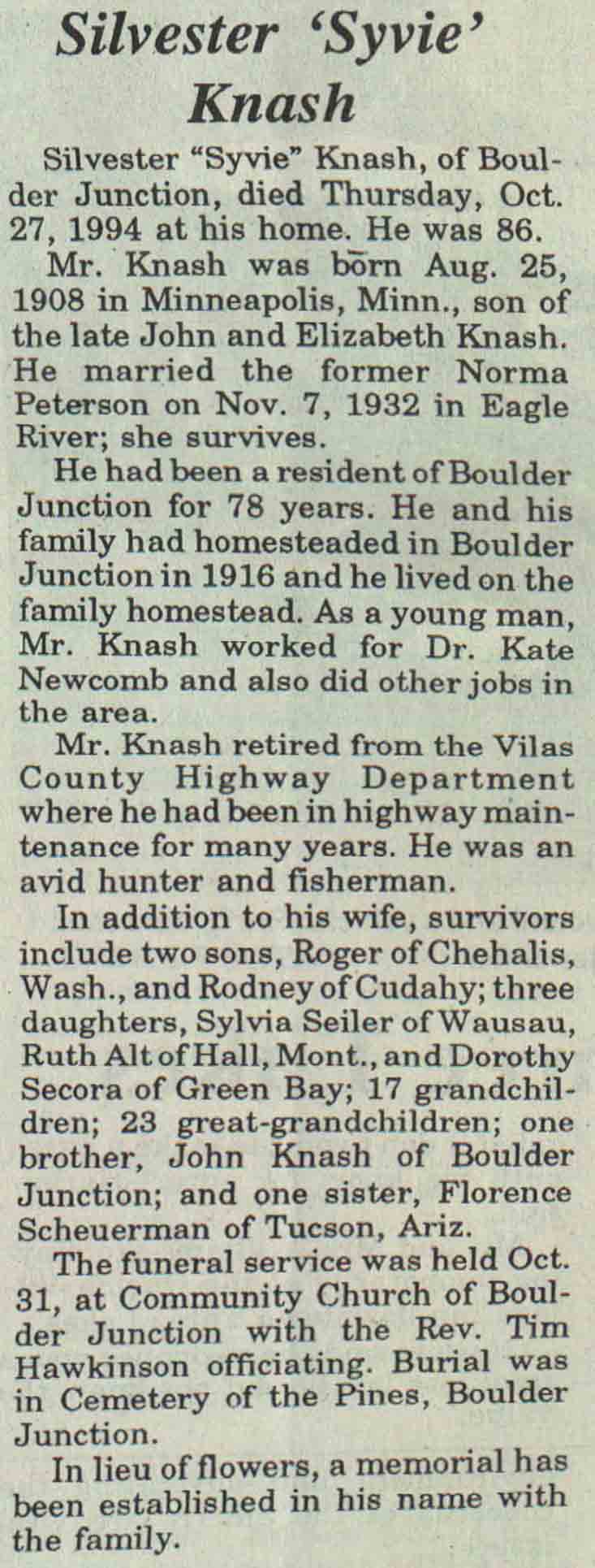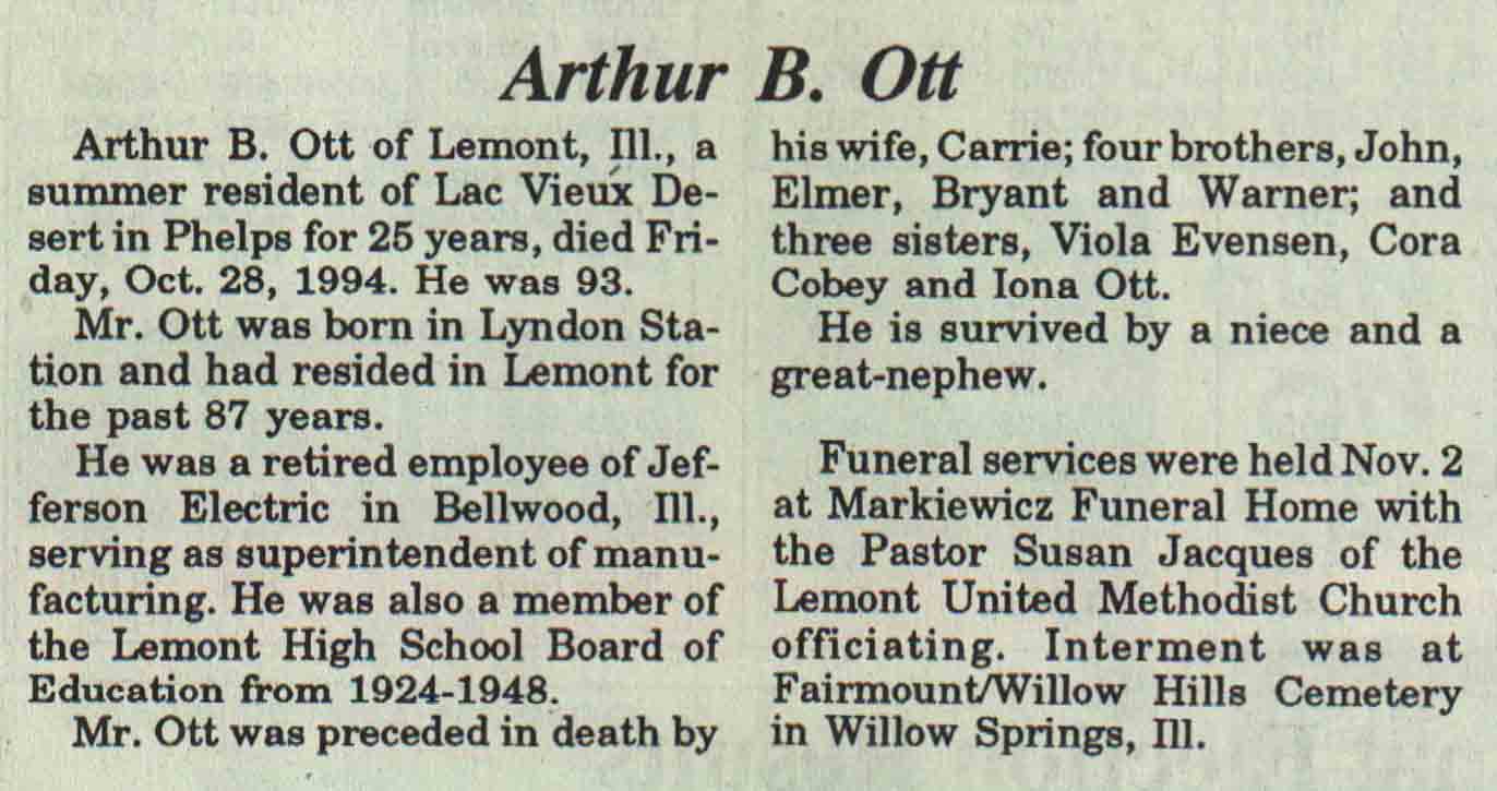 | Ott | Arthur B | c 1901 | 28 Oct 1994 | V N-R | 09 Nov 1994 | 4 |