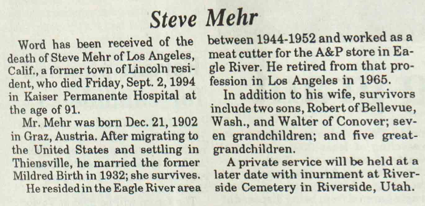 | Step | Leo A | 11 Apr 1912 | 05 Sep 1994 | V N-R | 14 Sep 1994 | 4 |