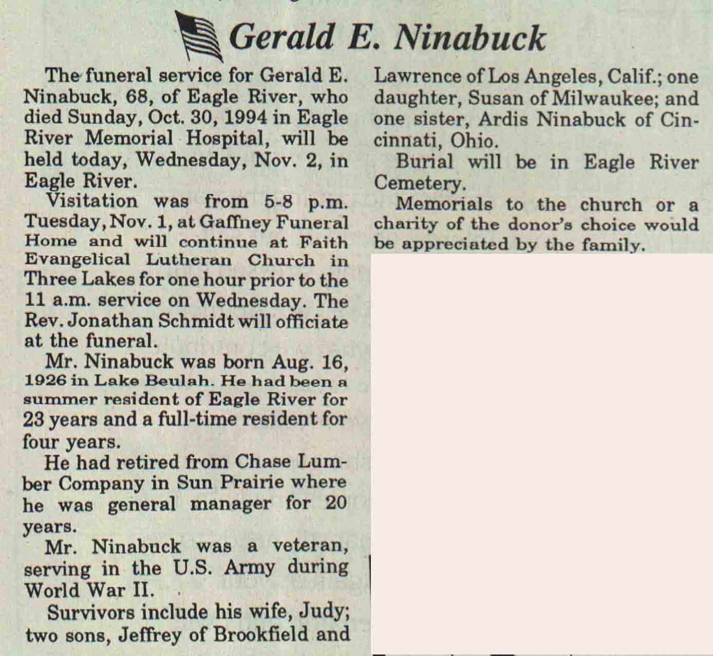 | Wachowiak | Eugene 'Gene' | 08 Jul 1925 | 20 Oct 1994 | V N-R | 26 Oct 1994 | 4 |