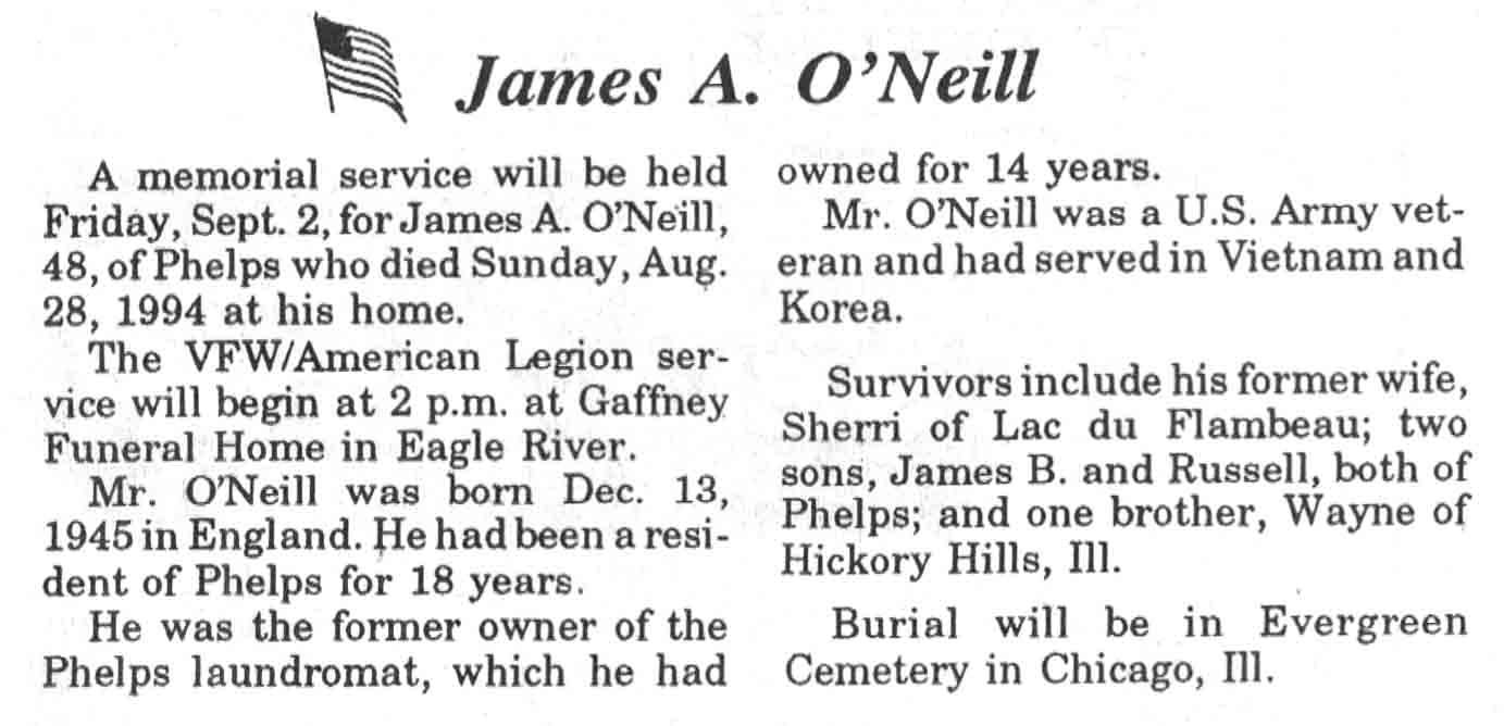 | O'Neill | James A | 13 Dec 1945 | 28 Aug 1994 | V N-R | 31 Aug 1994 | 4 |