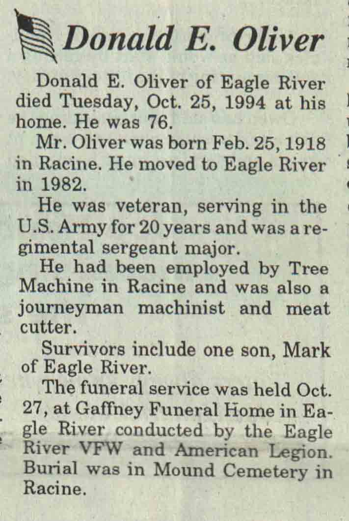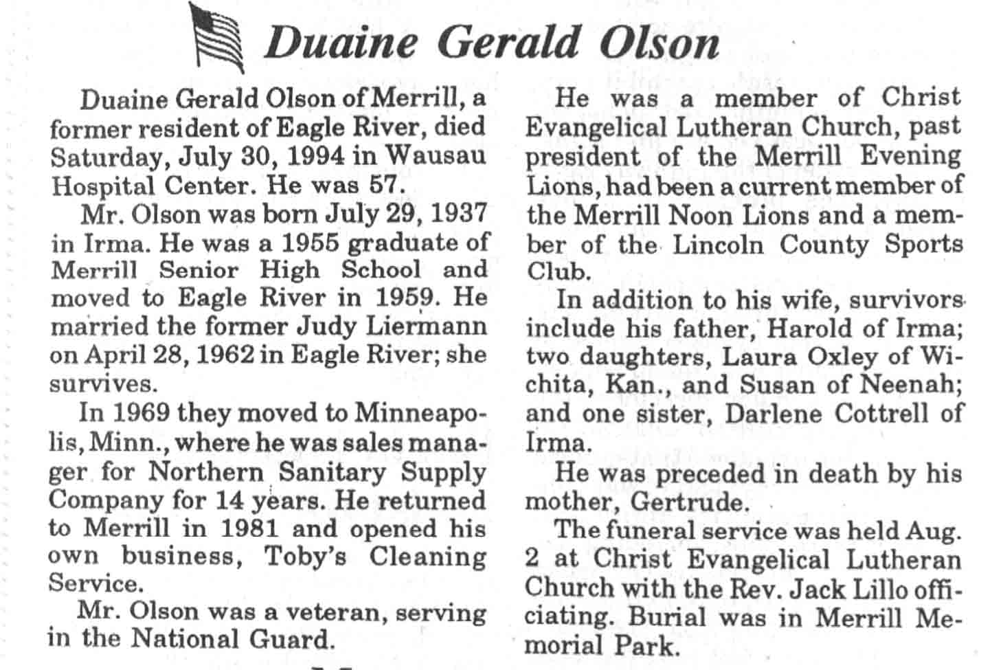 | Olson | Duane Gerald | 29 Jul 1937 | 30 Jul 1994 | V N-R | 10 Aug 1994 | 4 |