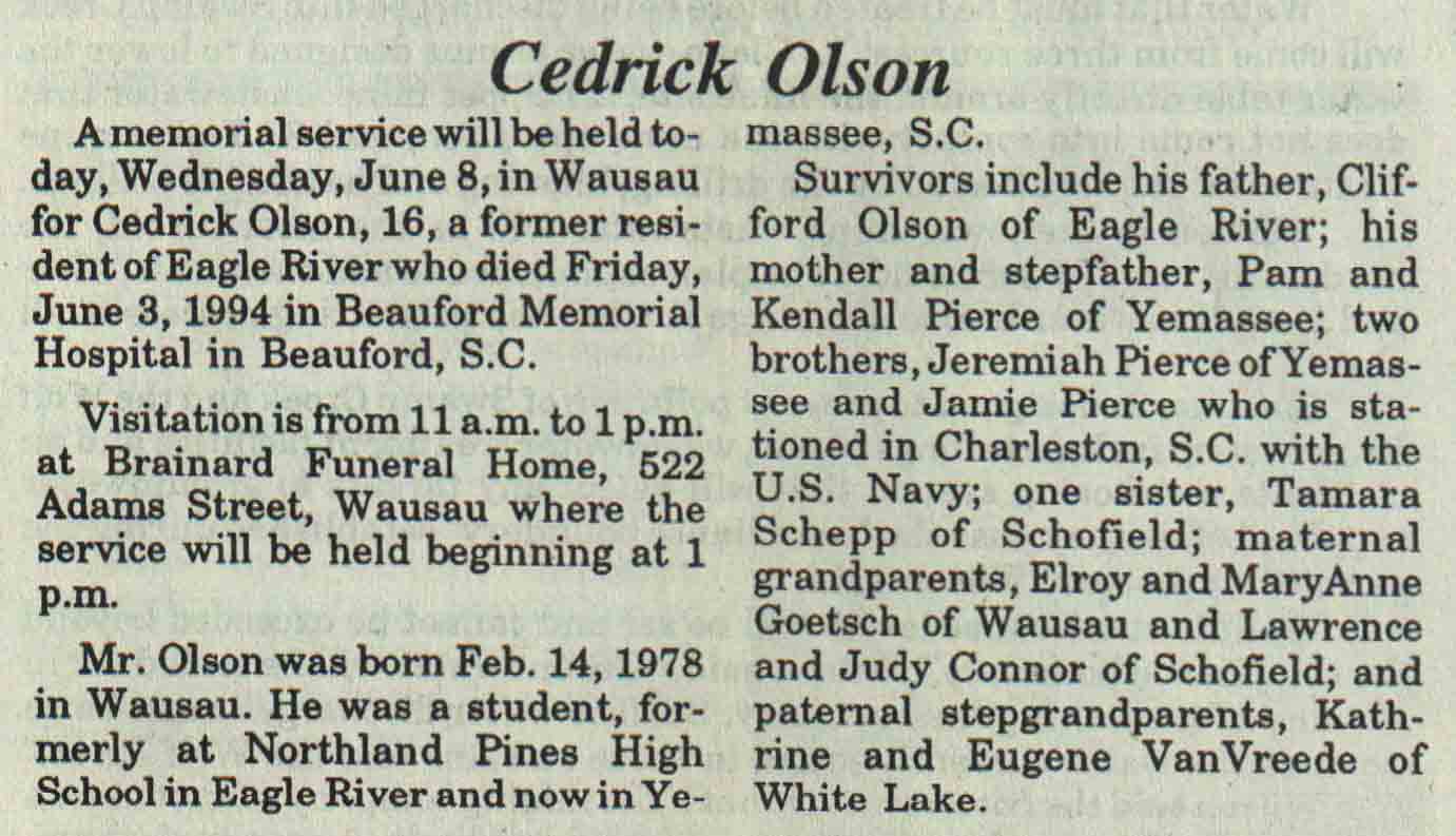 | Olson | Cedrick | 14 Feb 1978 | 03 Jun 1994 | V N-R | 08 Jun 1994 | 4 |