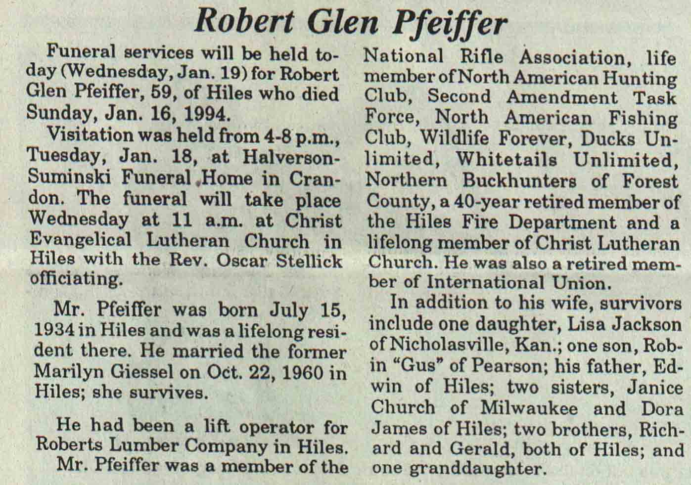 | Pfeiffer | Robert Glen | 15 Jul 1934 | 16 Jan 1994 | V N-R | 19 Jan 1994 | 4 |