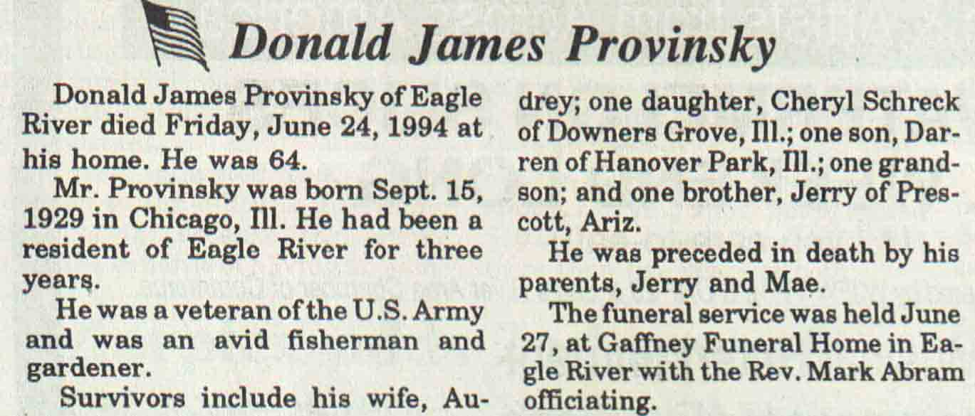 | Provinsky | Donald James | 15 Sep 1929 | 24 Jun 1994 | V N-R | 29 Jun 1994 | 4 |
