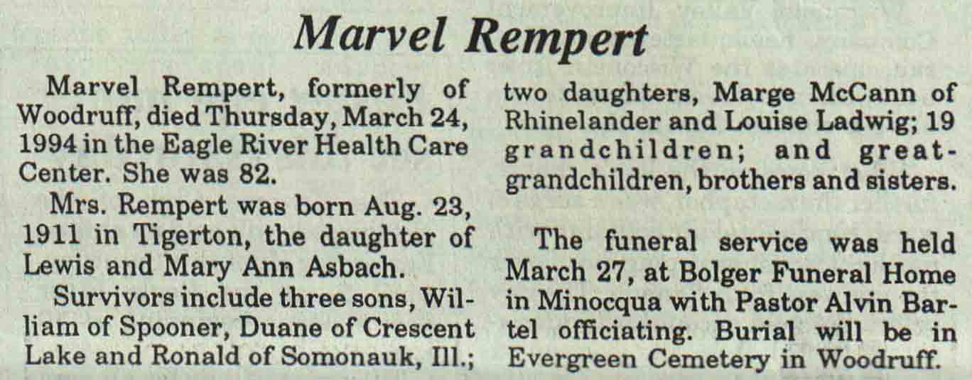 | Rempert | Marvel (Asbach) | 23 Aug 1911 | 24 Mar 1994 | V N-R | 30 Mar 1994 | 4 |