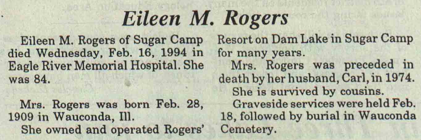 | Rogers | Eileen M | 28 Feb 1909 | 16 Feb 1994 | V N-R | 23 Feb 1994 | 4 |