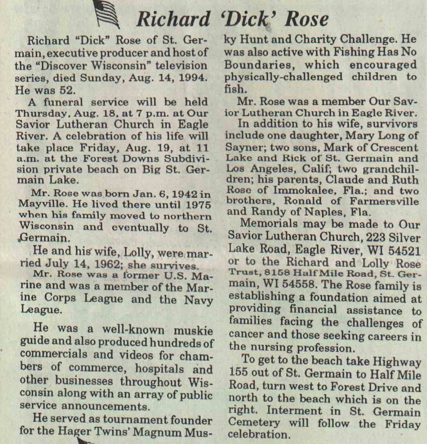 | Rose | Richard 'Dick' | 06 Jan 1942 | 14 Aug 1994 | V N-R | 17 Aug 1994 | 4 |