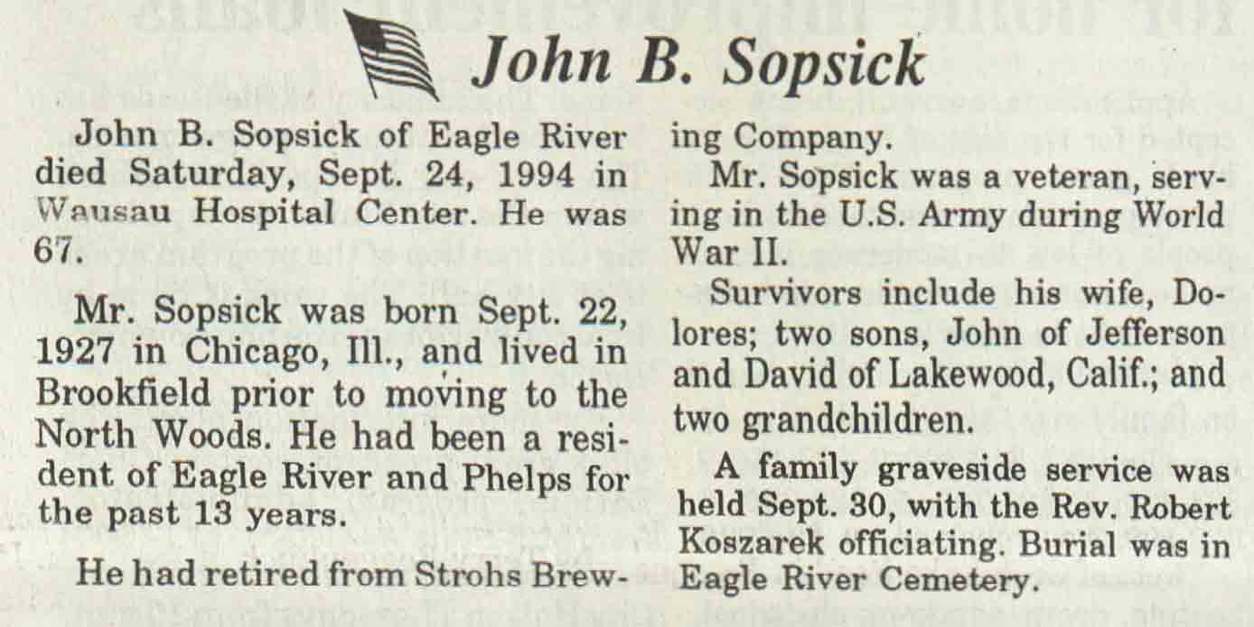 | Sopsick | John B | 22 Sep 1927 | 24 Sep 1994 | V N-R | 05 Oct 1994 | 4 |