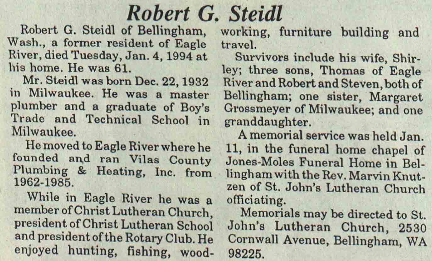 | Steidl | Robert G | 22 Dec 1932 | 04 Jan 1994 | V N-R | 19 Jan 1994 | 4 |