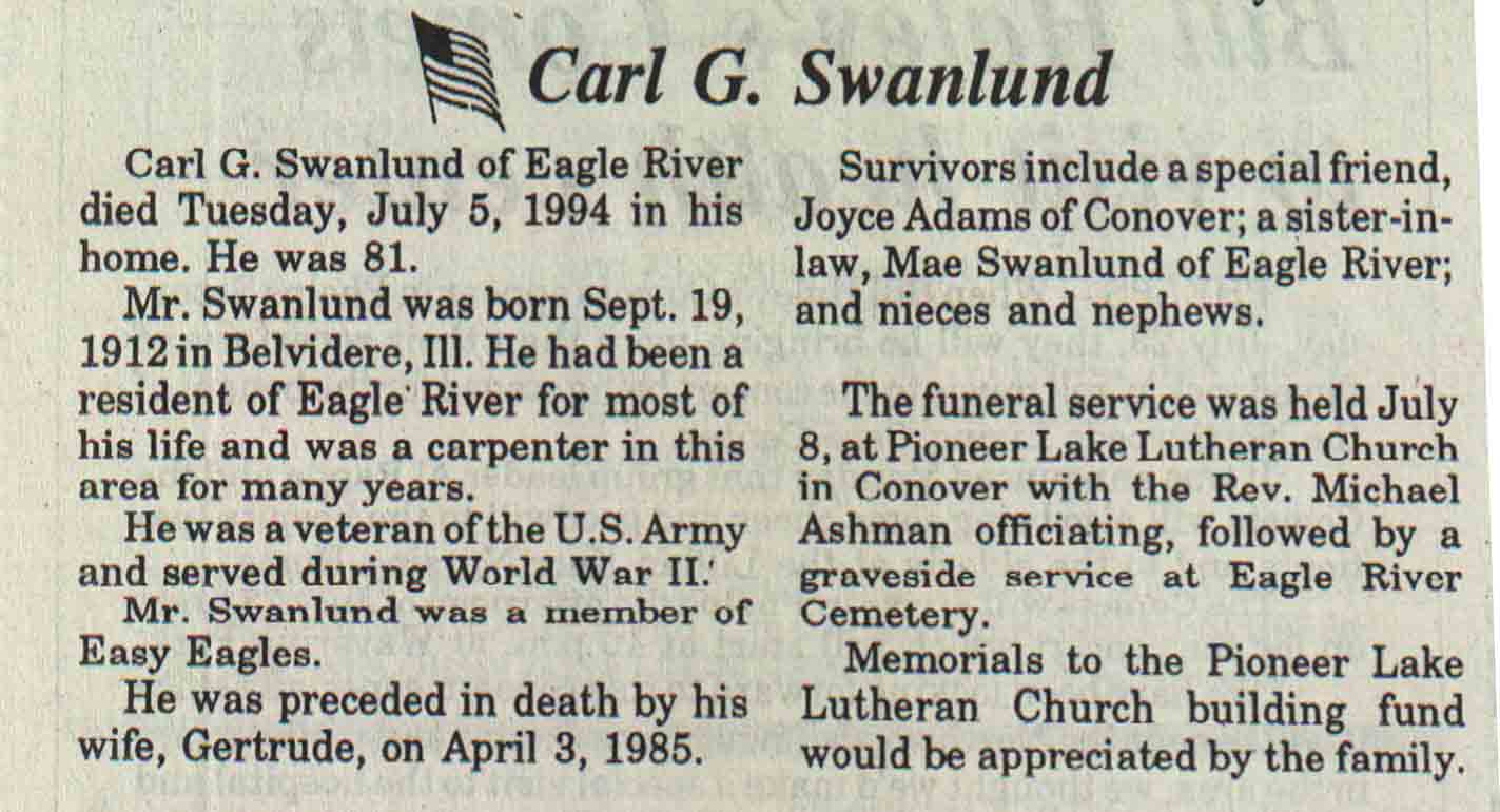| Swanlund | Carl G | 19 Sep 1912 | 05 Jul 1994 | V N-R | 13 Jul 1994 | 4 |