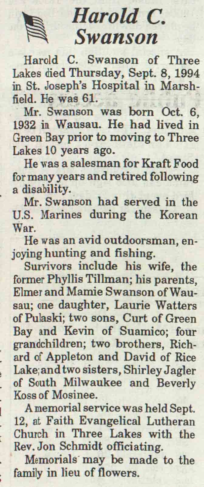 | Swanson | Harold C | 06 Oct 1932 | 08 Sep 1994 | V N-R | 14 Sep 1994 | 4 |