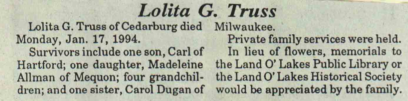 | Truss | Lolita G | 17 Jan 1994 | V N-R | 19 Jan 1994 | 4 | |