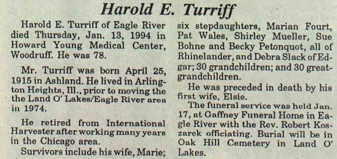 | Turriff | Harold E | 25 Apr 1915 | 13 Jan 1994 | V N-R | 19 Jan 1994 | 4 |
