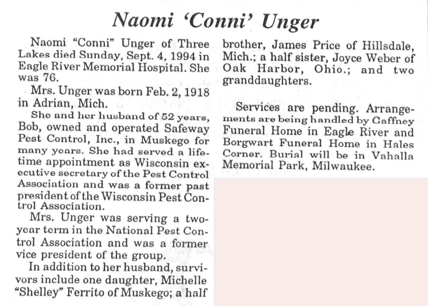 | Unger | Naomi 'Connie' (Price) | 02 Feb 1918 | 04 Sep 1994 | V N-R | 07 Sep 1994 | 4 |