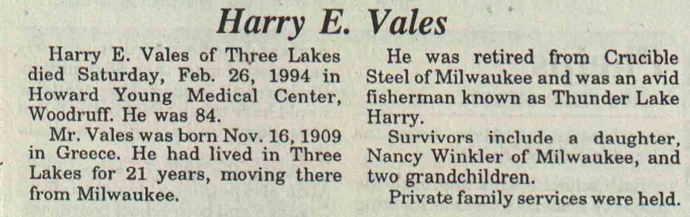 | Vales | Harry E | 16 Nov 1909 | 26 Feb 1994 | V N-R | 02 Mar 1994 | 4 |