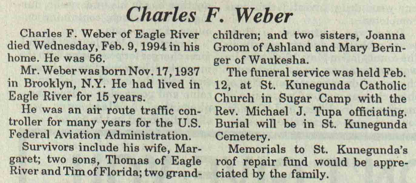 | Weber | Charles F | 17 Nov 1937 | 09 Feb 1994 | V N-R | 16 Feb 1994 | 4 |
