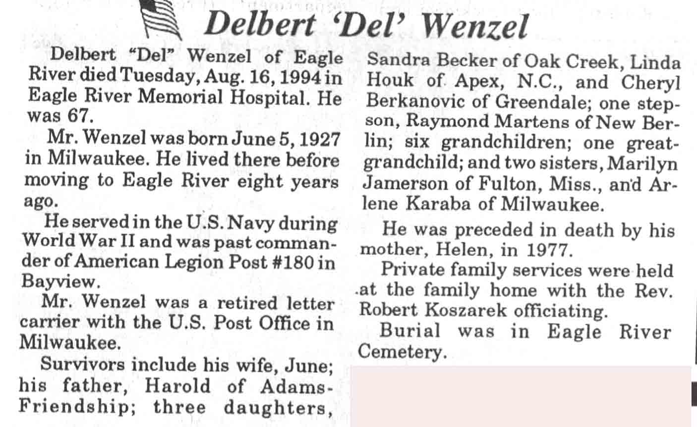 | Wenzel | Delbert 'Del' | 05 Jun 1927 | 16 Aug 1994 | V N-R | 24 Aug 1994 | 4 |