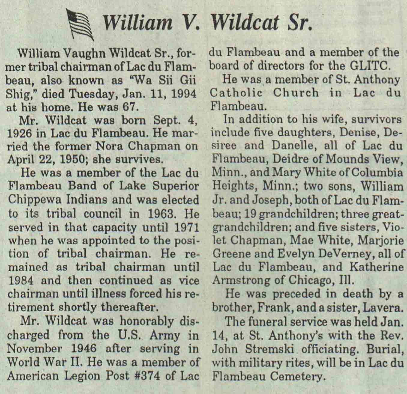| Wildcat | William V, Sr | 04 Sep 1926 | 11 Jan 1994 | V N-R | 19 Jan 1994 | 4 |
