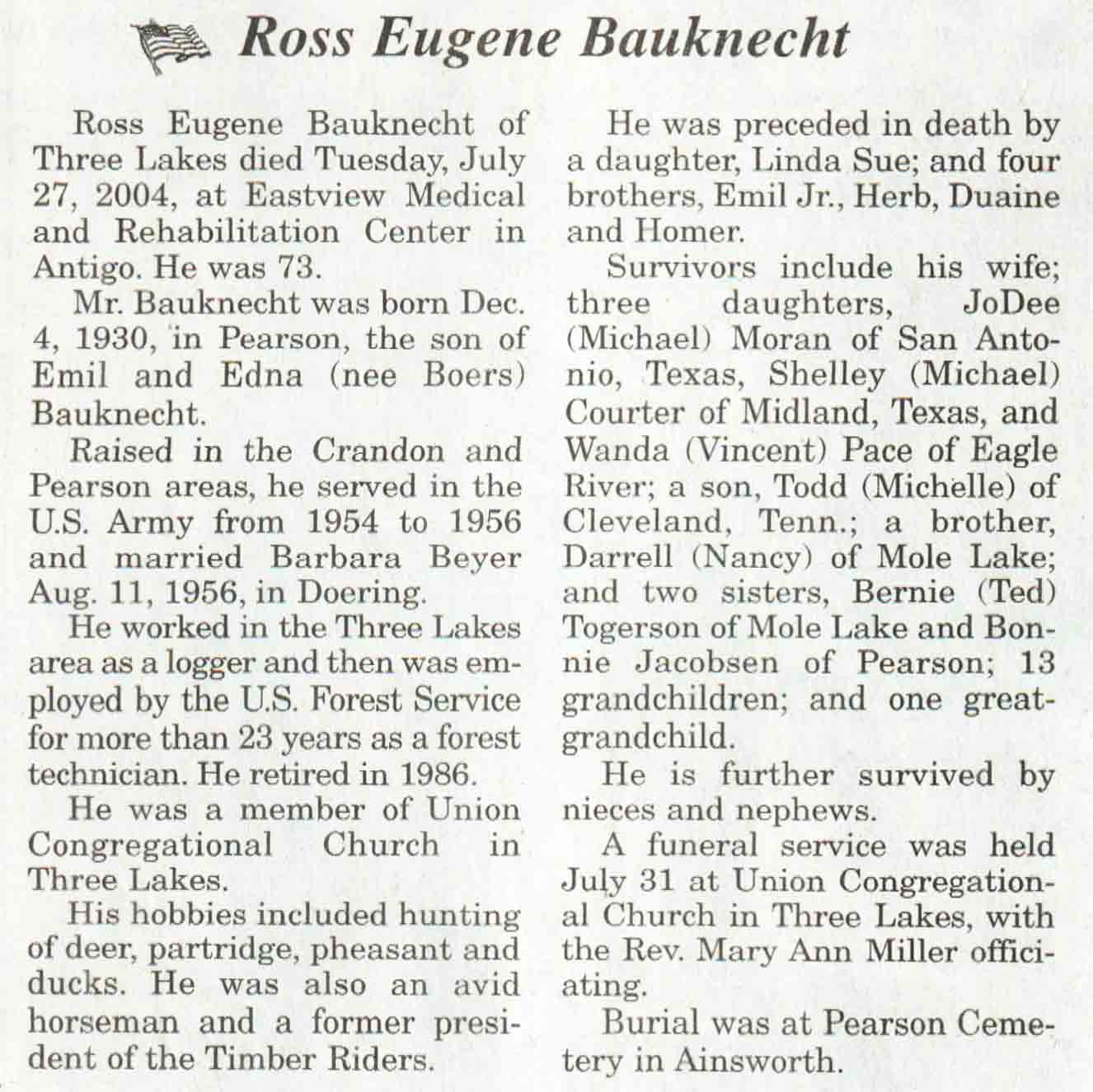 | Bauknecht | Ross Eugene | 04 Dec 1930 | 27 Jul 2004 | V N-R | 04 Aug 2004 | 4A |
