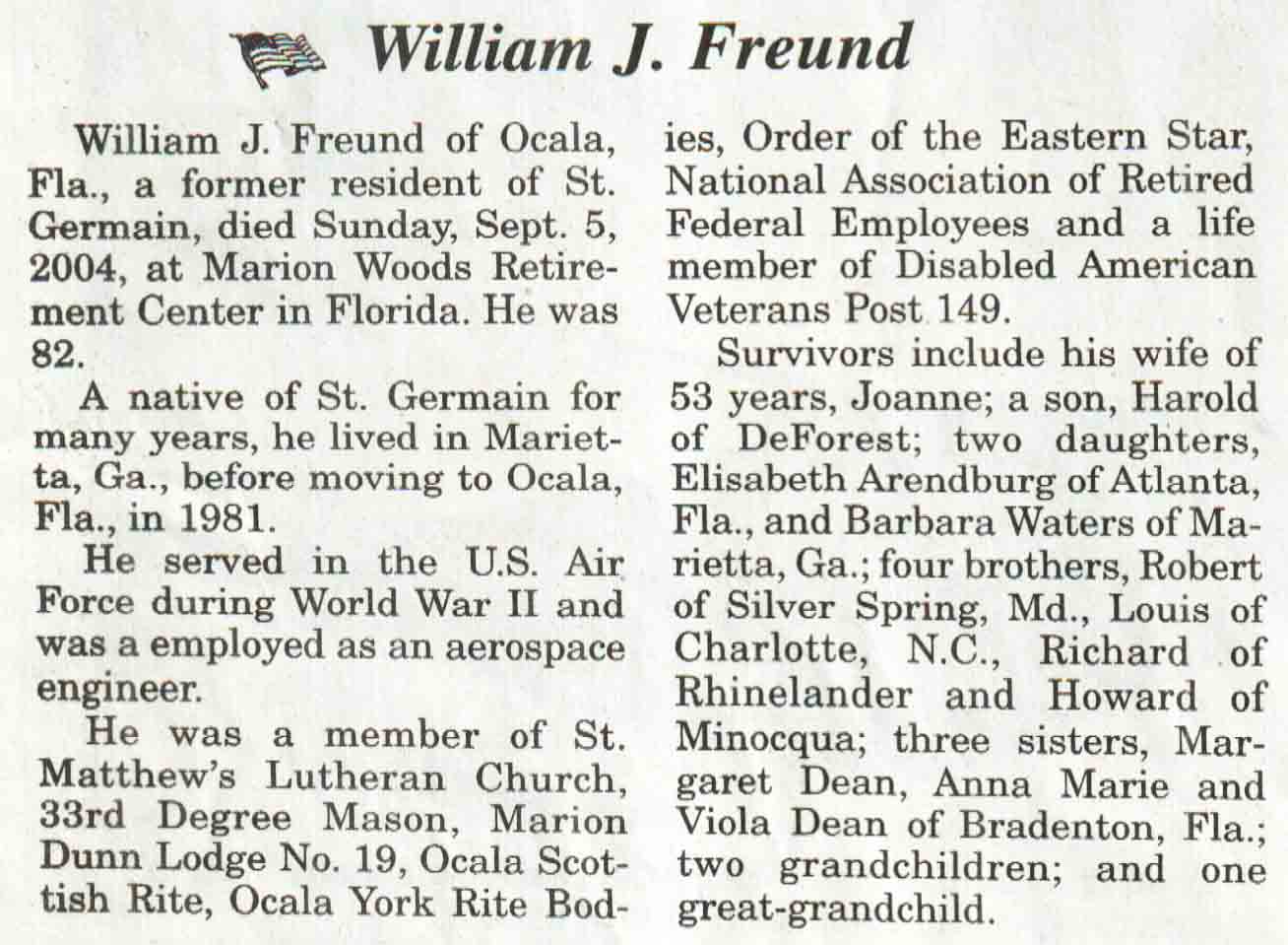 | Wranik | Frederick F | 29 May 1923 | 09 Jun 2004 | V N-R | 14 Jul 2004 | 4A |