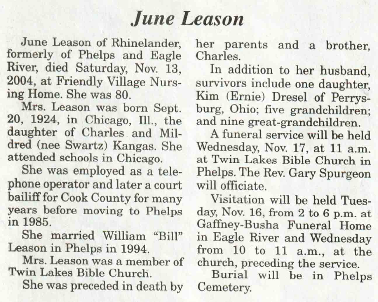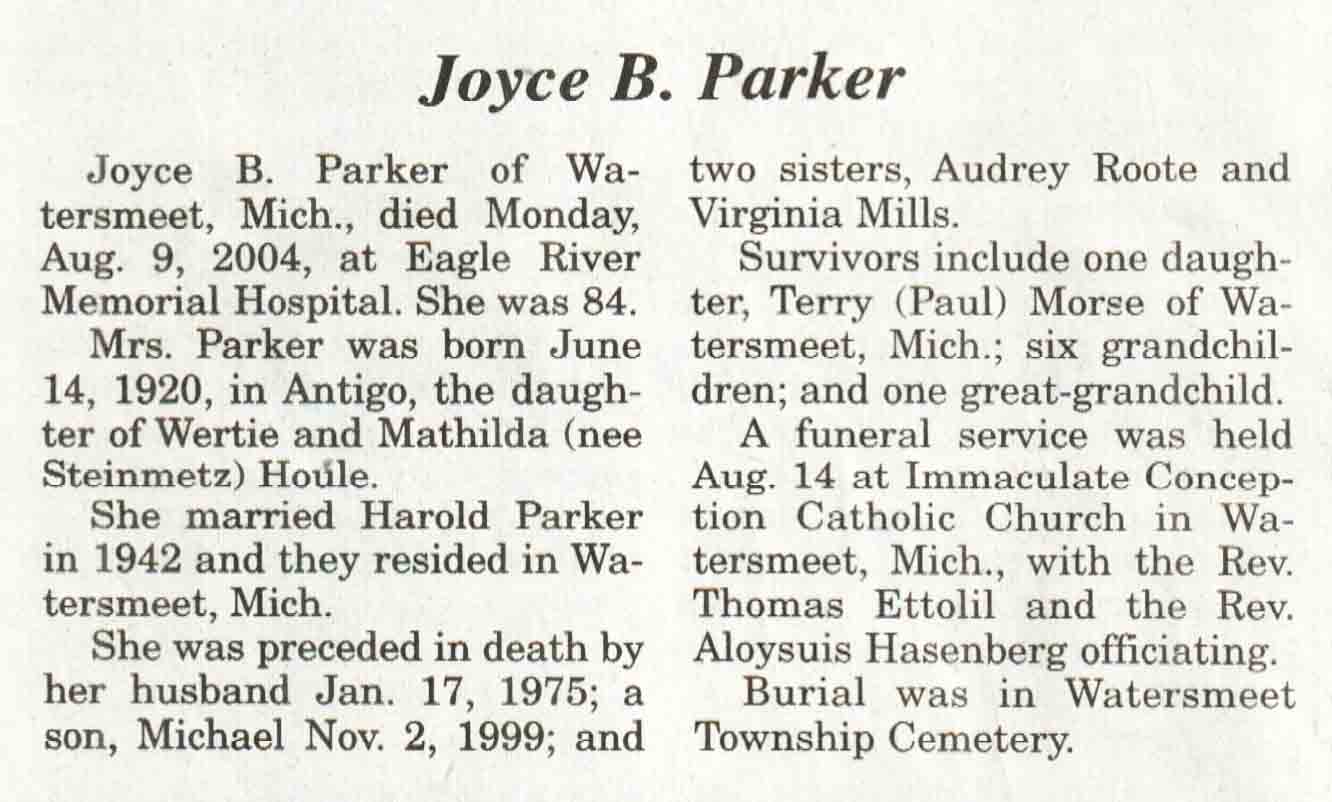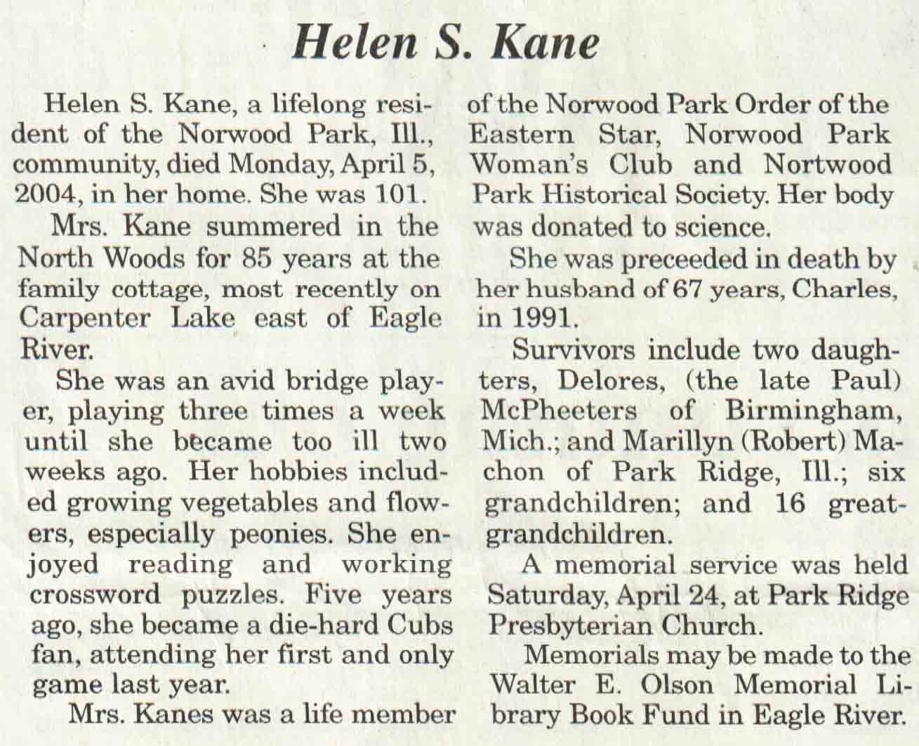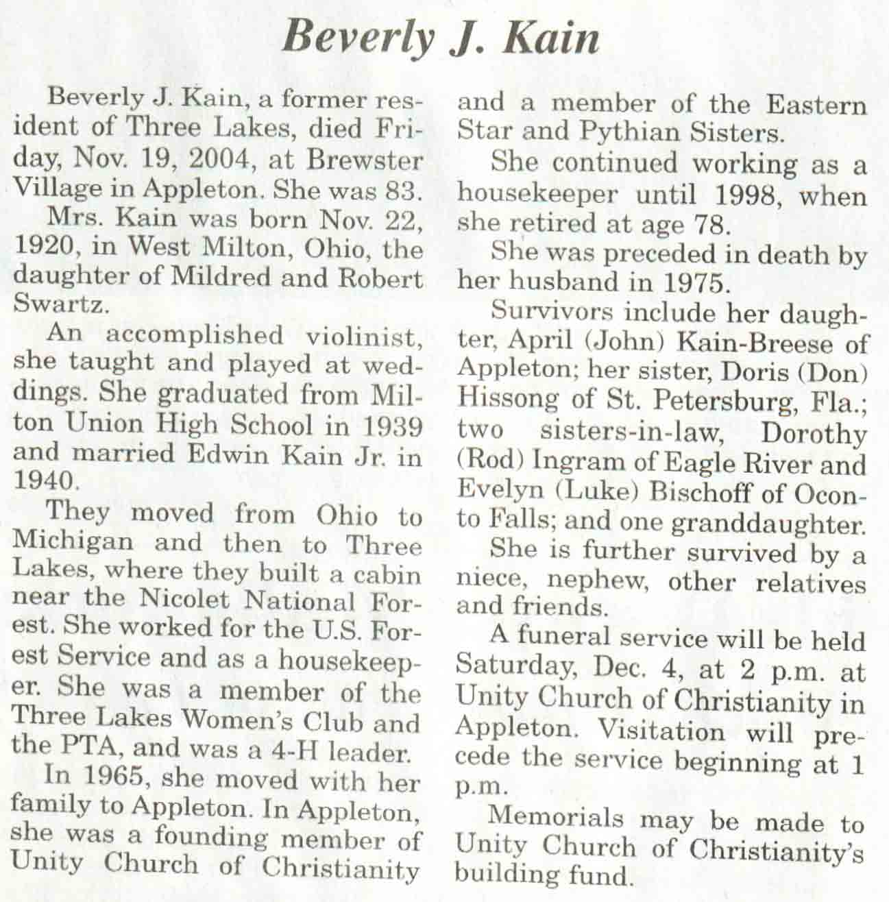 | Bellaire | Eunice D (Krueger) | 20 Sep 1929 | 23 Sep 2004 | V N-R | 29 Sep 2004 | 4A |