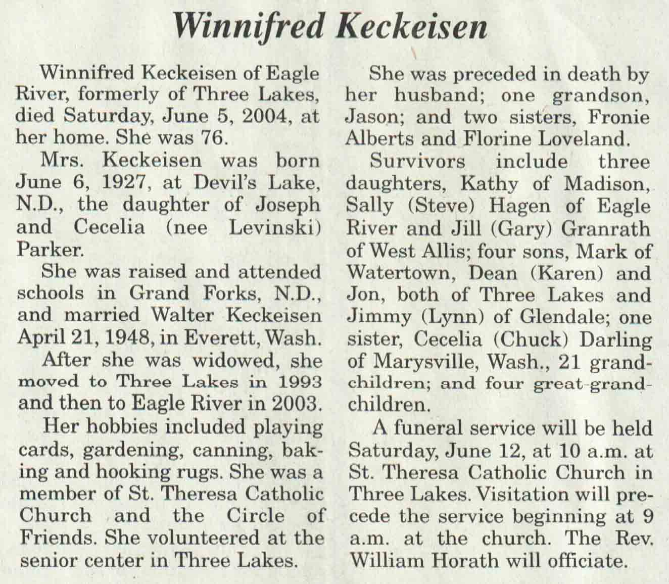 | Winchell | Diane M (Fischer) | 05 Nov 1940 | 01 Jun 2004 | V N-R | 09 Jun 2004 | 4A |