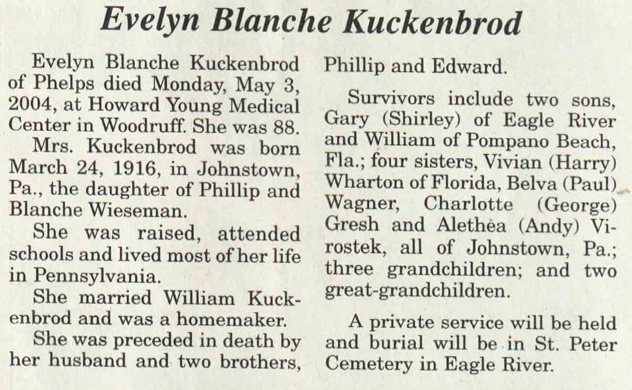 | Wendorf | Elizabeth (Kopushar) | 02 Oct 1909 | 05 Sep 2004 | V N-R | 15 Sep 2004 | 4A |