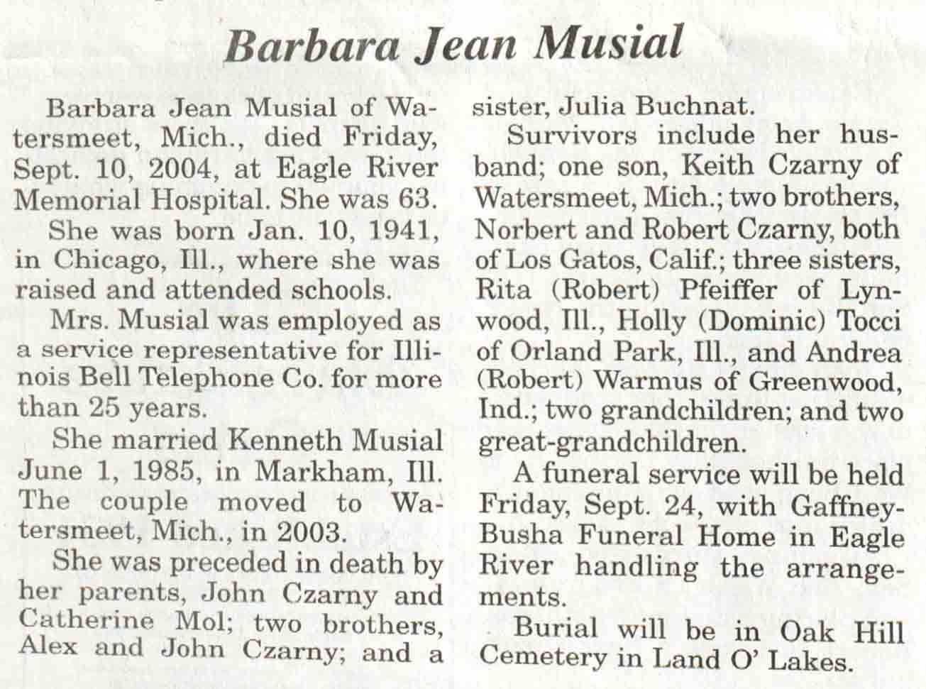 | Cerney | Irene S (Koskelin) | c 1922 | 02 Jun 2004 | V N-R | 16 Jun 2004 | 4A |