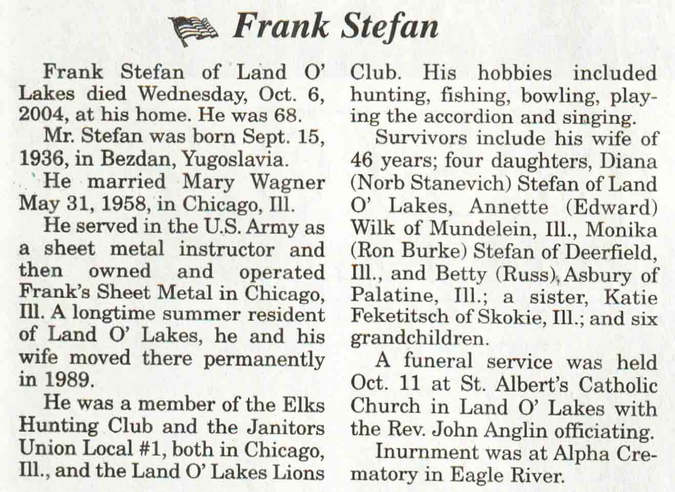 | Stefan | Frank | 15 Sep 1936 | 06 Oct 2004 | V N-R | 13 Oct 2004 | 4A |